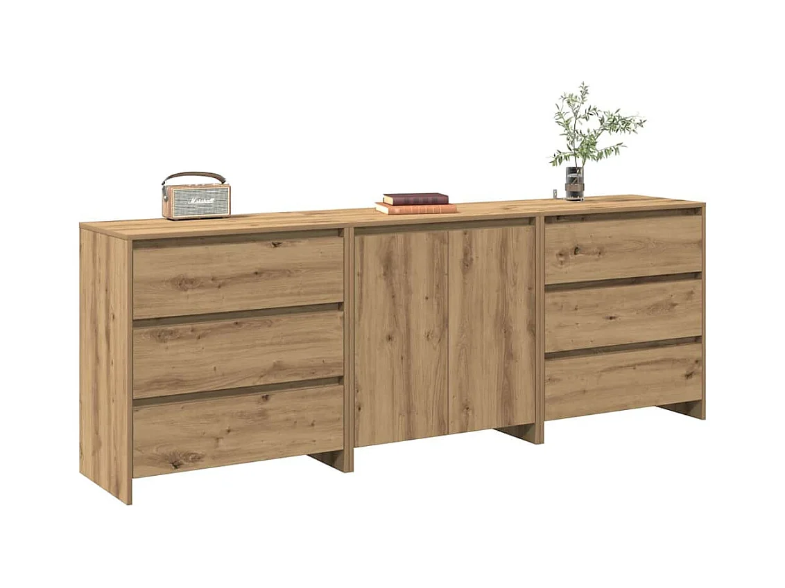 Buffet | Commode à tiroir | Meuble de rangement 3 pcs chêne artisanal bois d'ingénierie