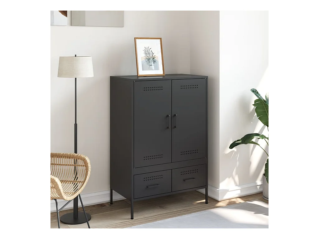 Buffet | Commode à tiroir | Meuble de rangement haut noir 68x39x101,5 cm acier
