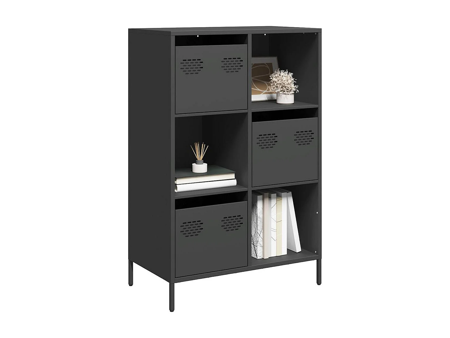Buffet | Bahut | Meuble de rangement haut noir 68x39x107 cm acier
