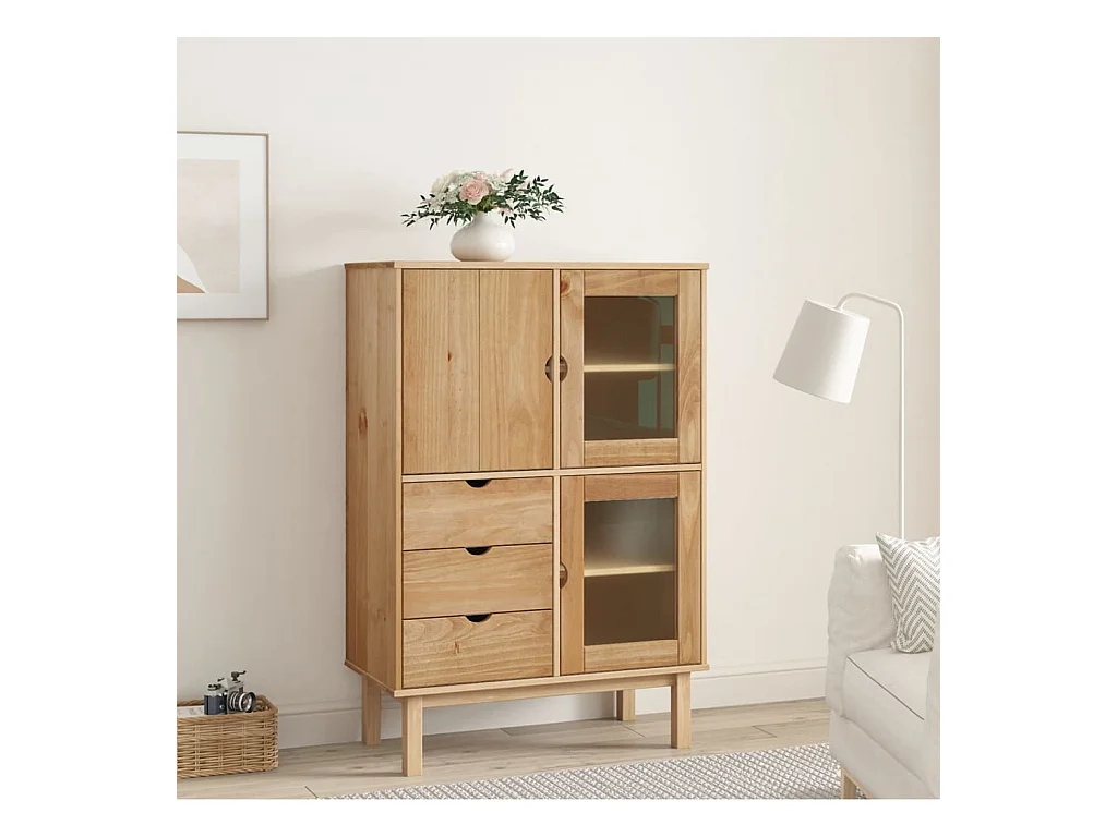 Buffet | Commode à tiroir | Meuble de rangement haut OTTA 85x43x125 cm bois massif de pin