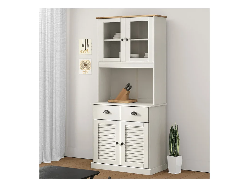 Buffet | Commode à tiroir | Meuble de rangement haut VIGO blanc 78x40x175 cm bois massif de pin