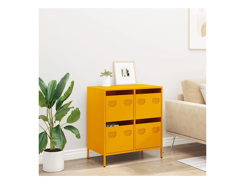 Buffet | Commode à tiroir | Meuble de rangement jaune moutarde 68x39x73,5 cm acier laminé à froid