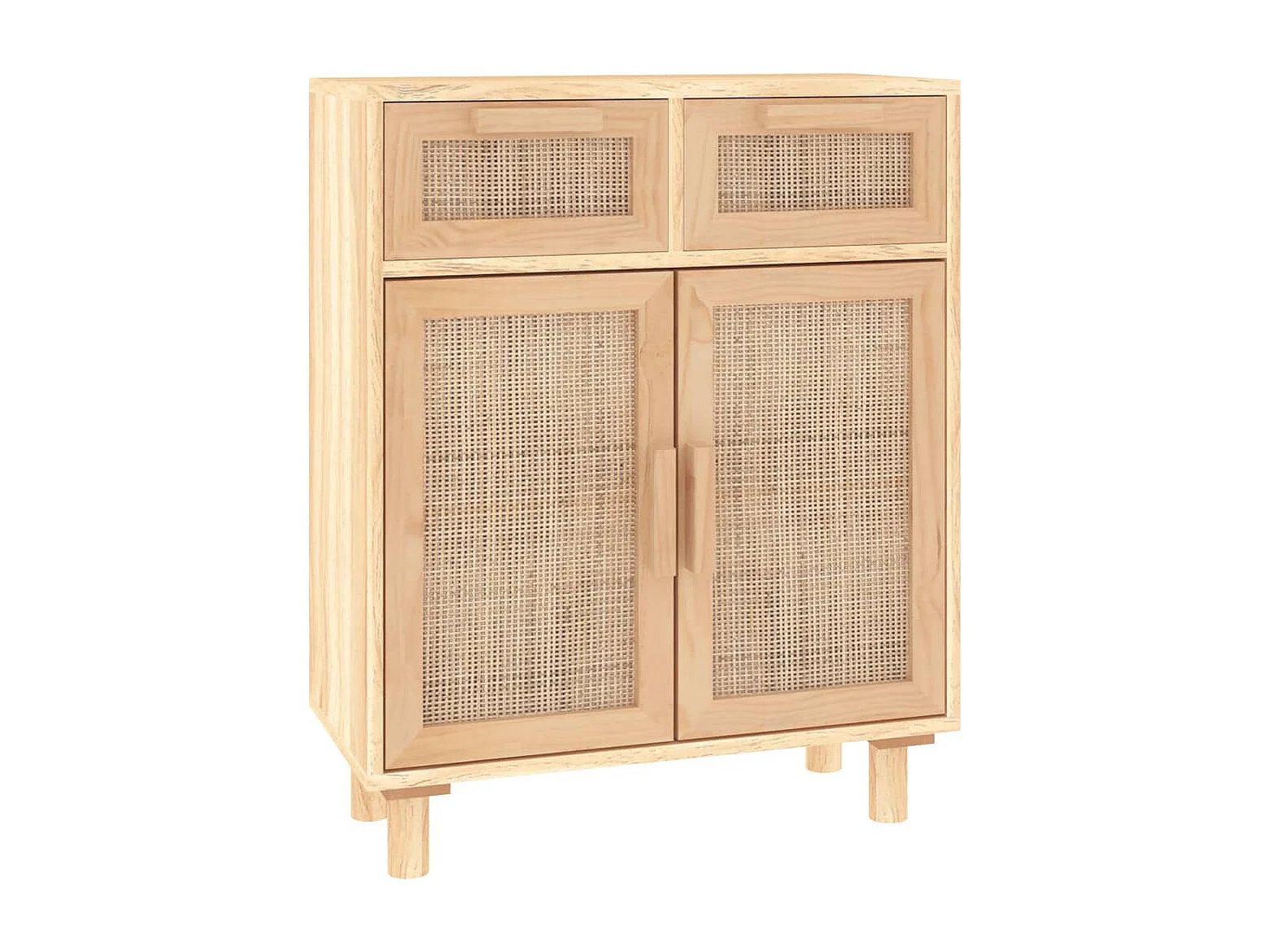 Buffet | Commode à tiroir | Meuble de rangement Marron 60x30x75 cm Bois de pin massif et rotin naturel