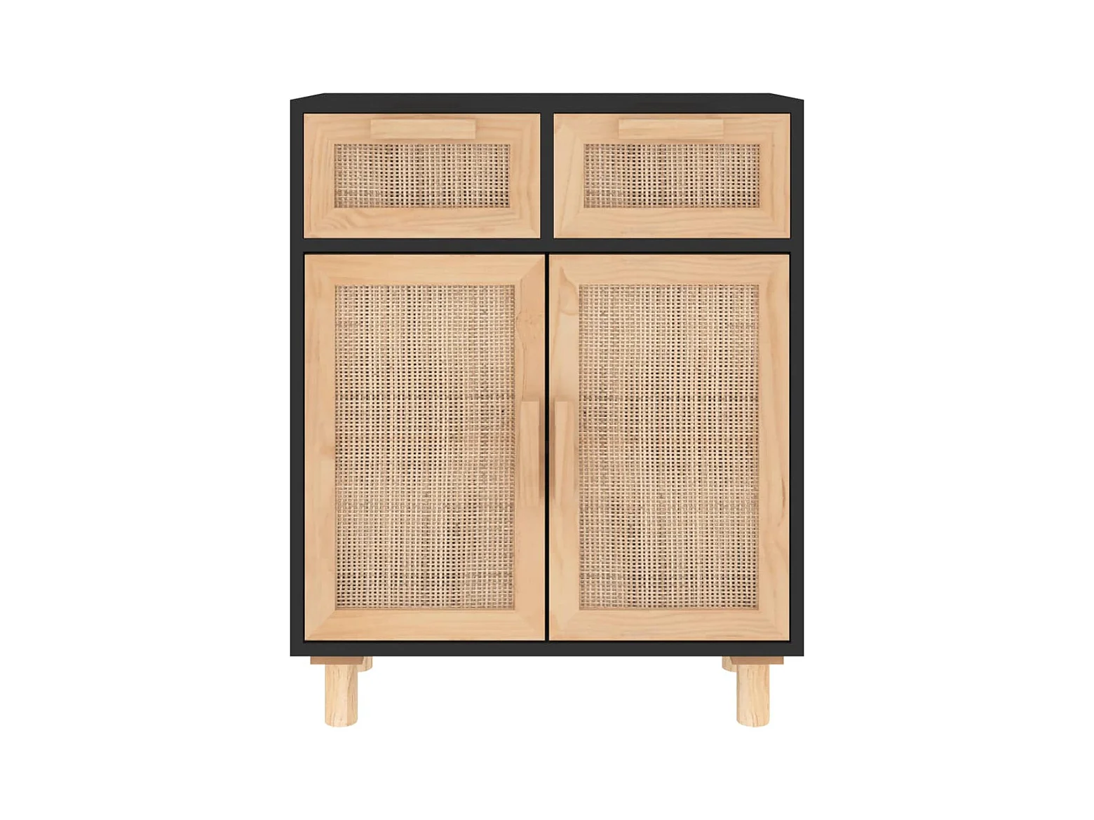Buffet | Commode à tiroir | Meuble de rangement Noir 60x30x75 cm Bois de pin massif et rotin naturel