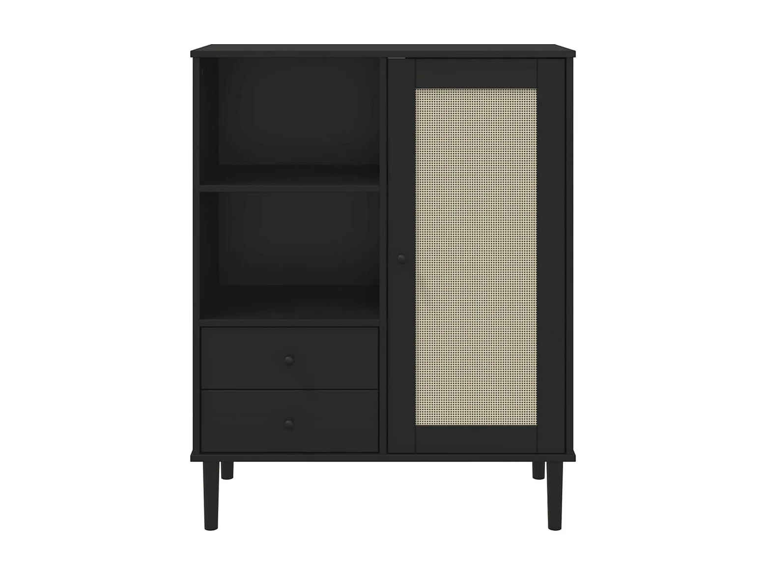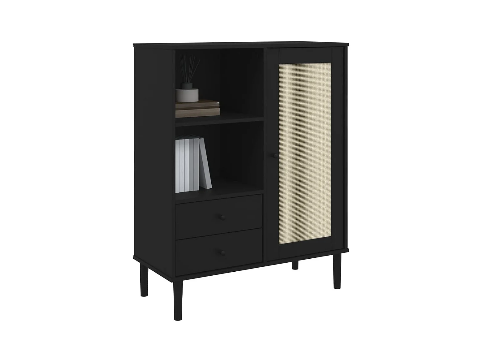 Buffet | Commode à tiroir | Meuble de rangement SENJA aspect rotin noir 90x40x112cm bois massif de pin