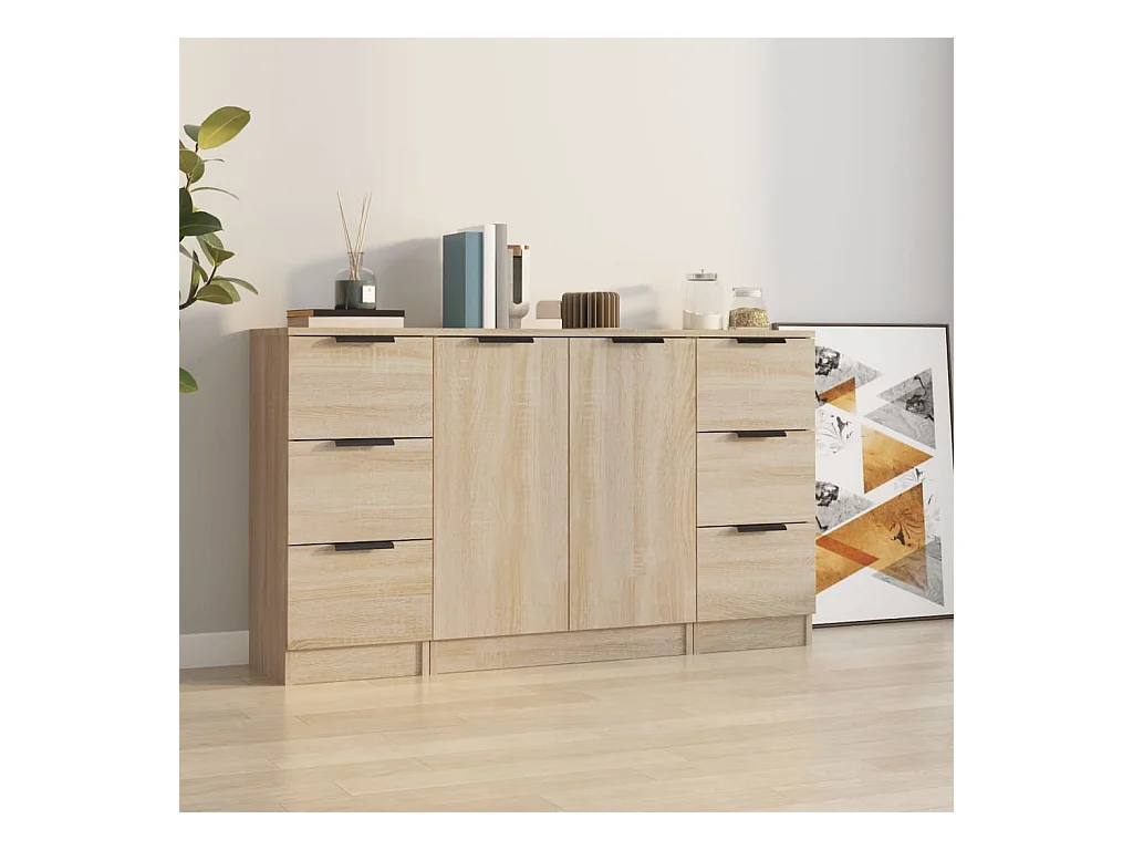 Buffet | Commode à tiroir | Meuble de rangements | Bahuts | Meuble de rangement 3 pcs Chêne sonoma Bois d'ingénierie