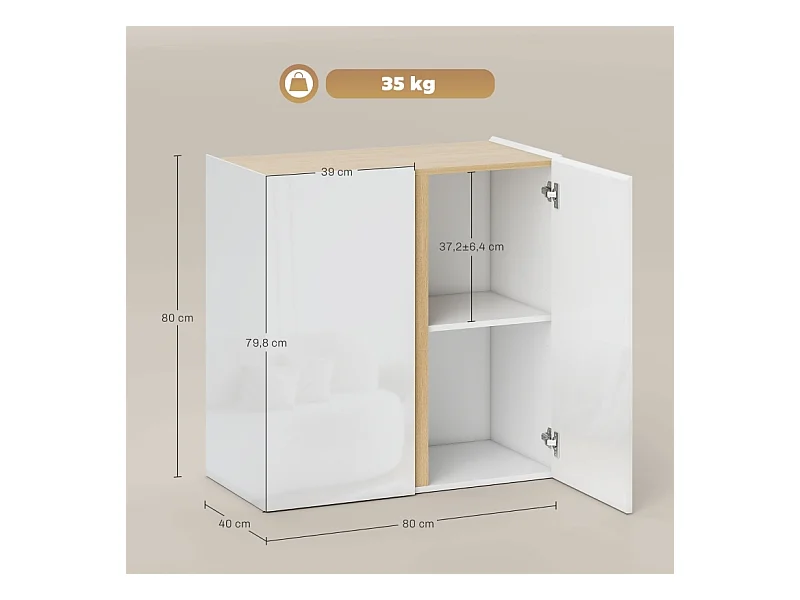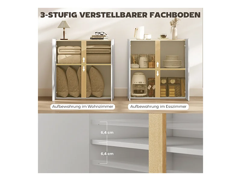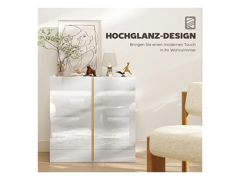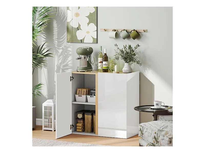 Buffet/commode avec portes à fermeture douce et étagères réglables – Idéal pour salon, cuisine ou salle à manger – Blanc