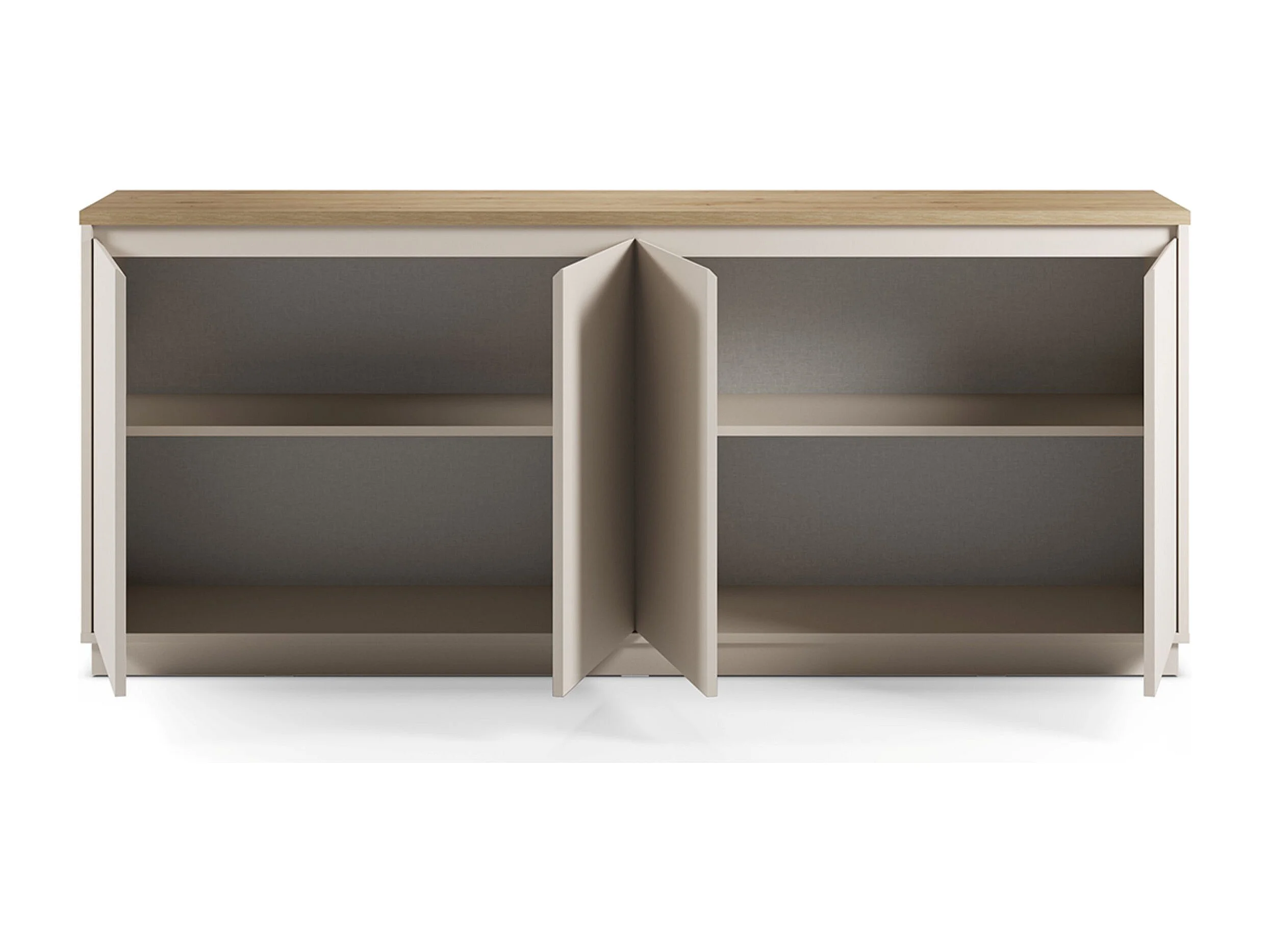 Buffet, commode de rangement avec 4 portes aspect bois coloris chêne, blanc - Longueur 201 x Profondeur 40,1 x Hauteur 84,40 cm