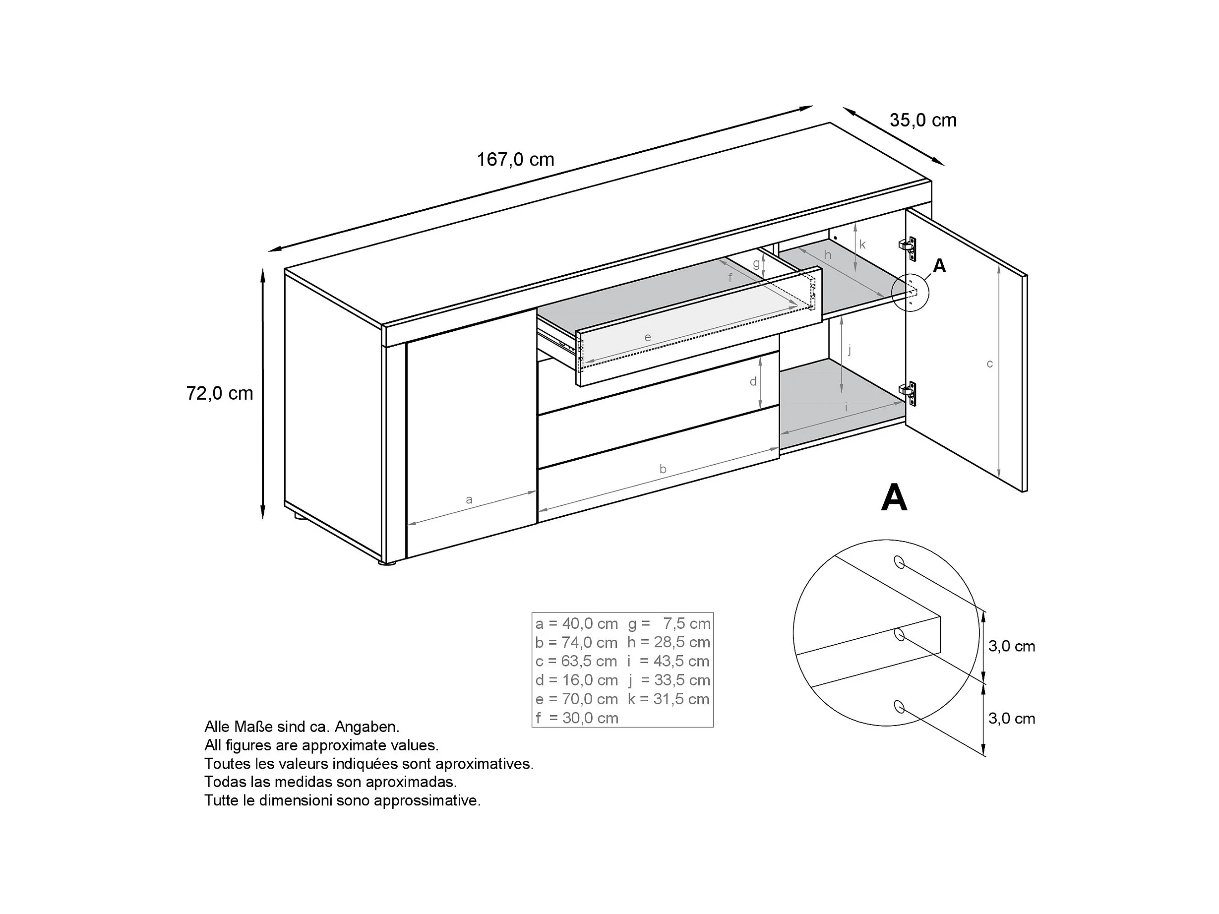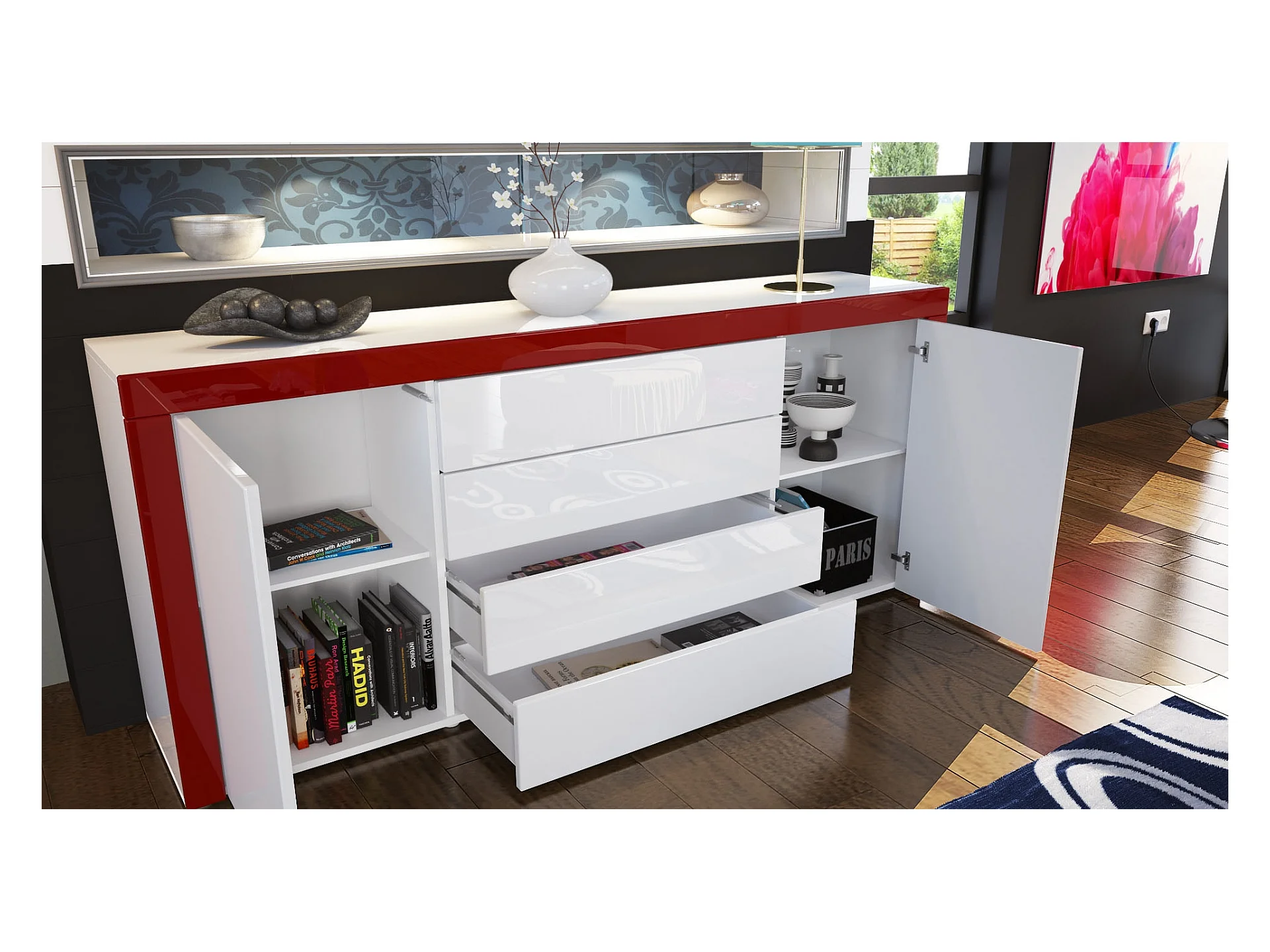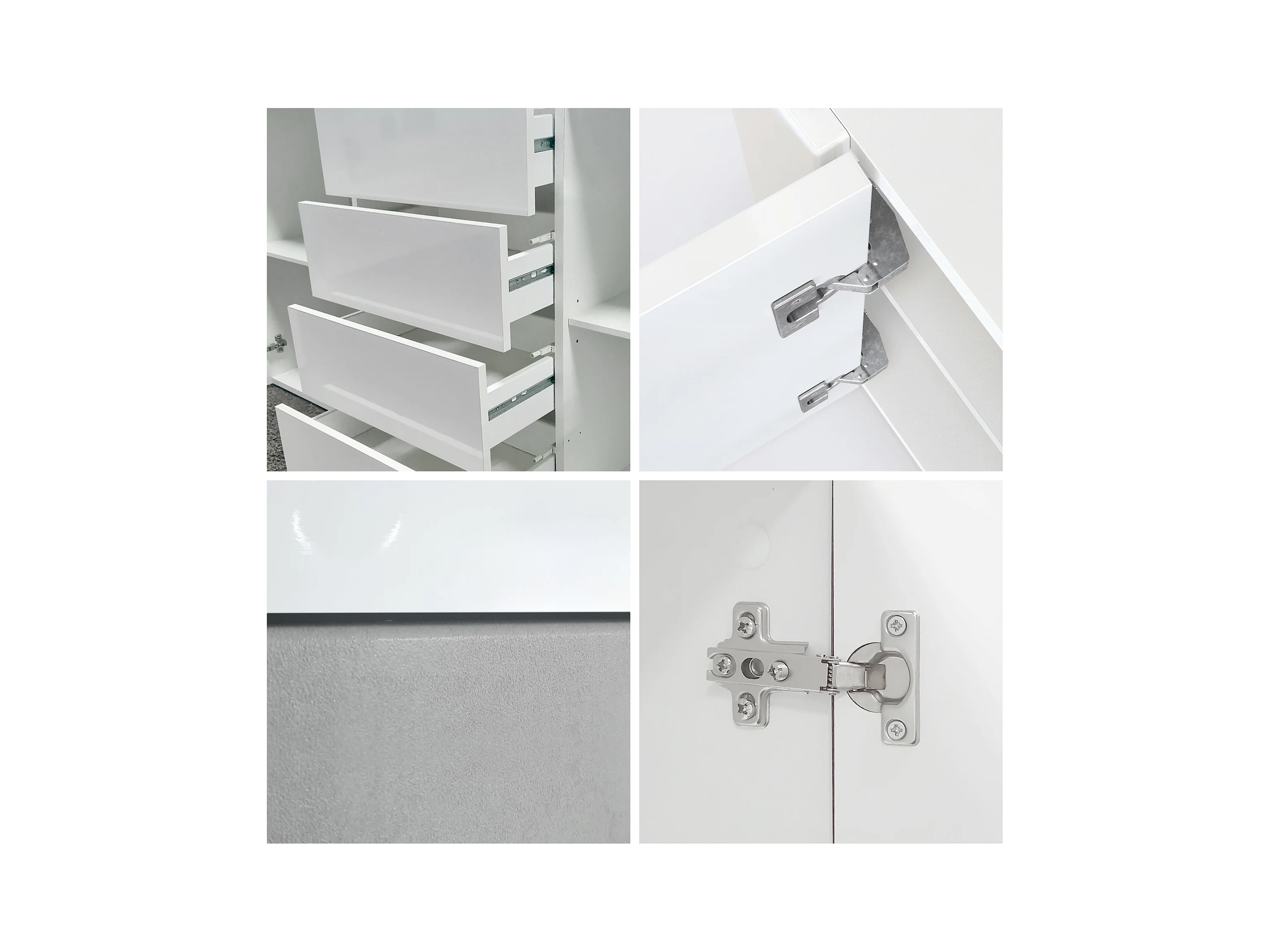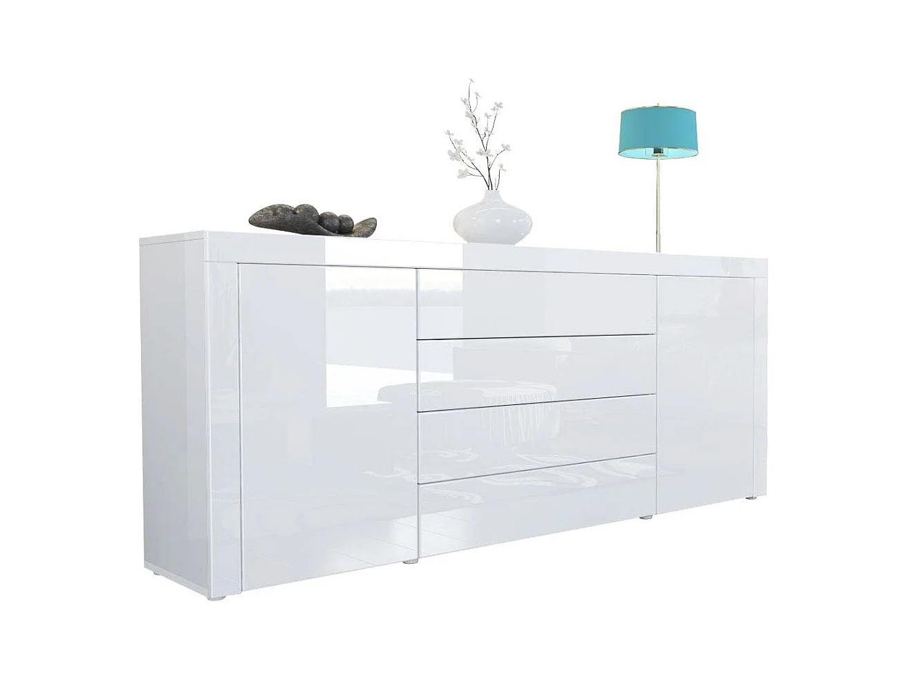 Buffet commode La Paz, Corps en Blanc haute brillance / Façades en blanc haute brillance avec une bordure en blanc haute brillance