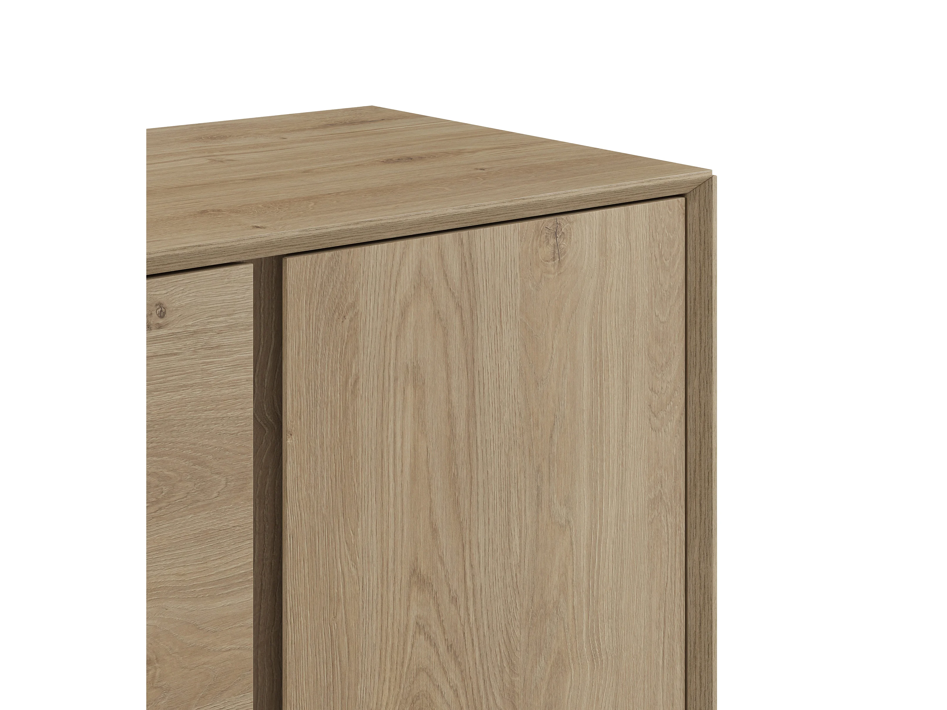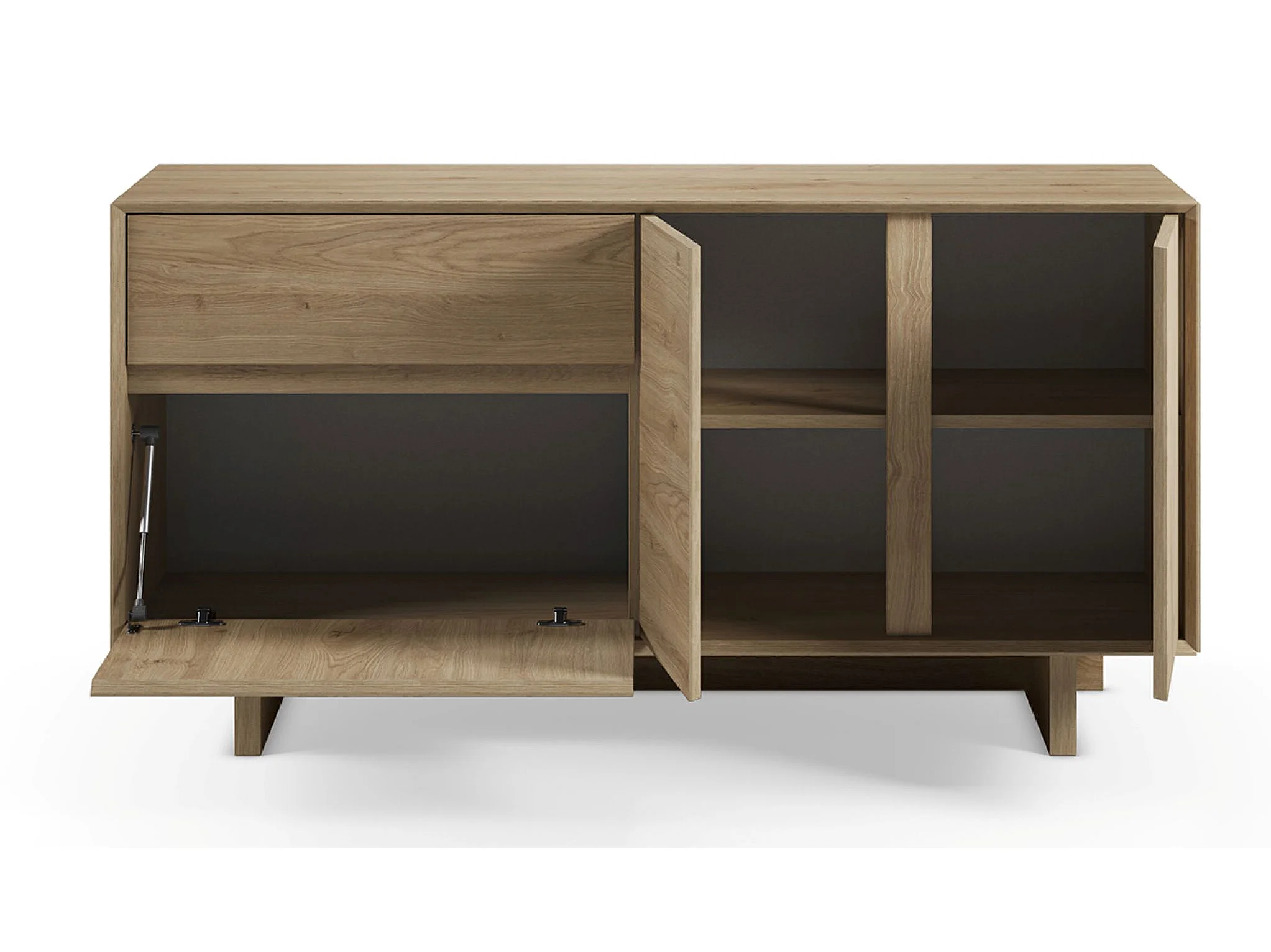 Buffet, commode rectangulaire avec 3 portes et 1 tiroir aspect bois coloris chêne - Longueur 146 x Profondeur 45 x Hauteur 76,5 cm