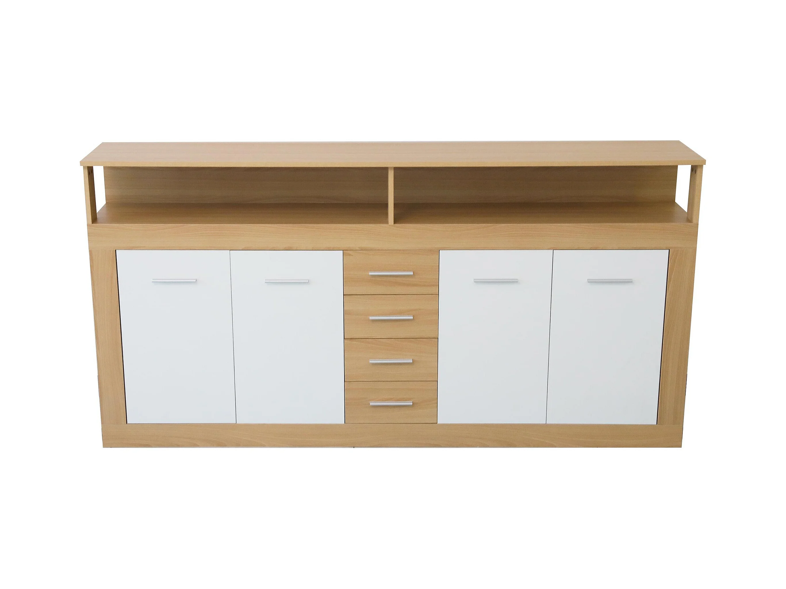 Buffet contemporain L190cm 4 portes er 4 tiroirs Lunata Bois sonoma et Blanc