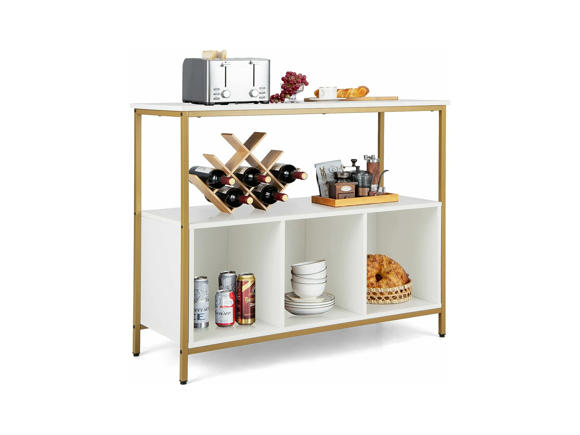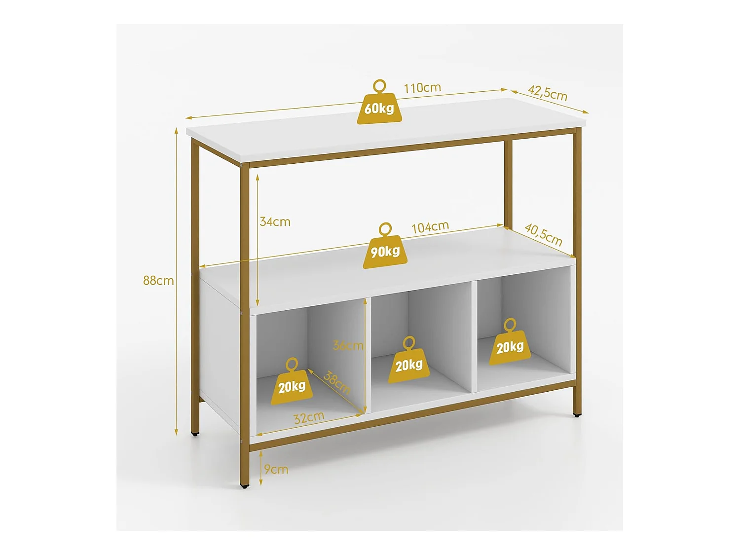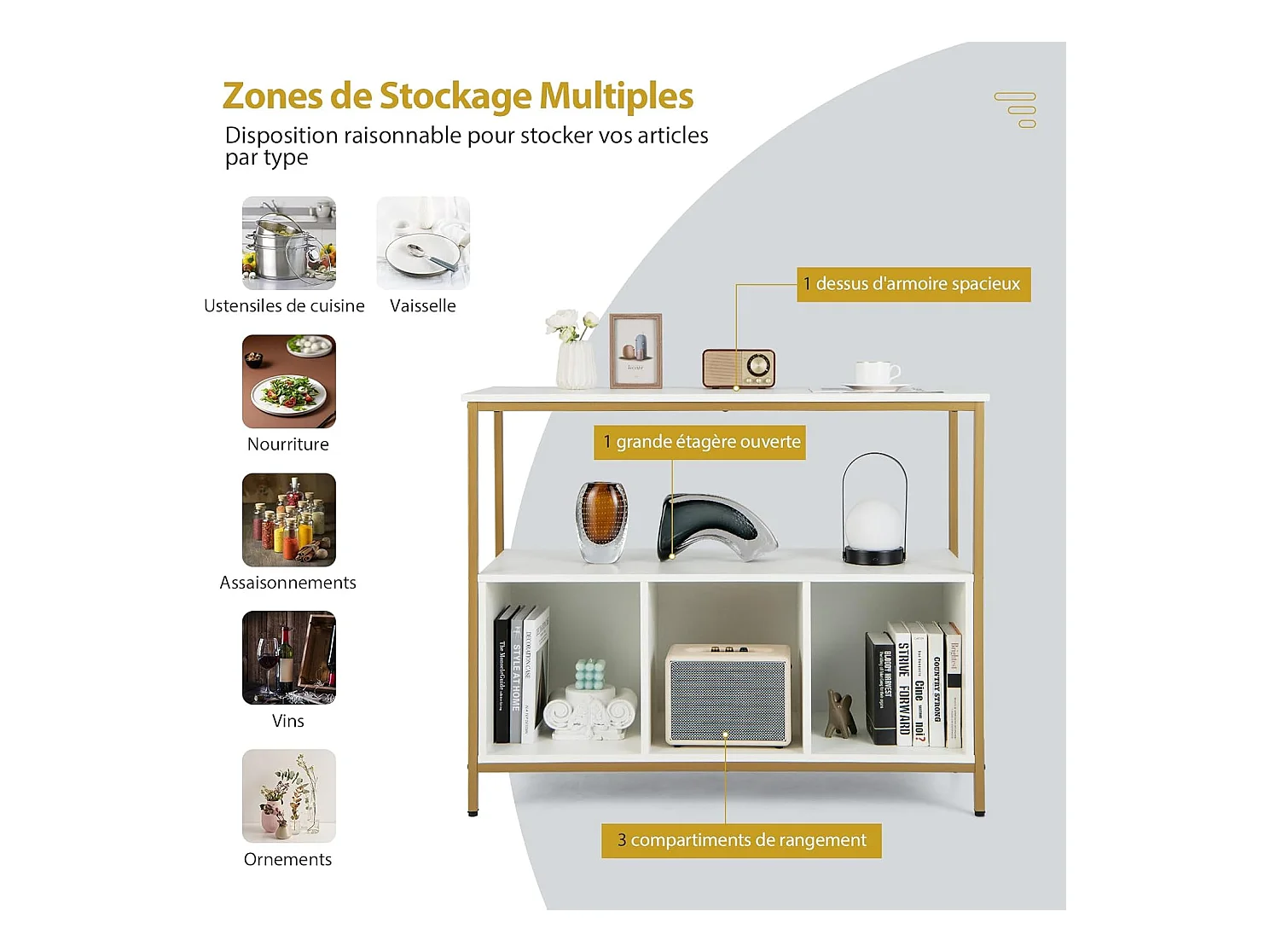 Buffet cuisine, meuble bas cuisine 3 compartiments, 2 étagère, 110 x 42,5 x 88 cm (blanc)