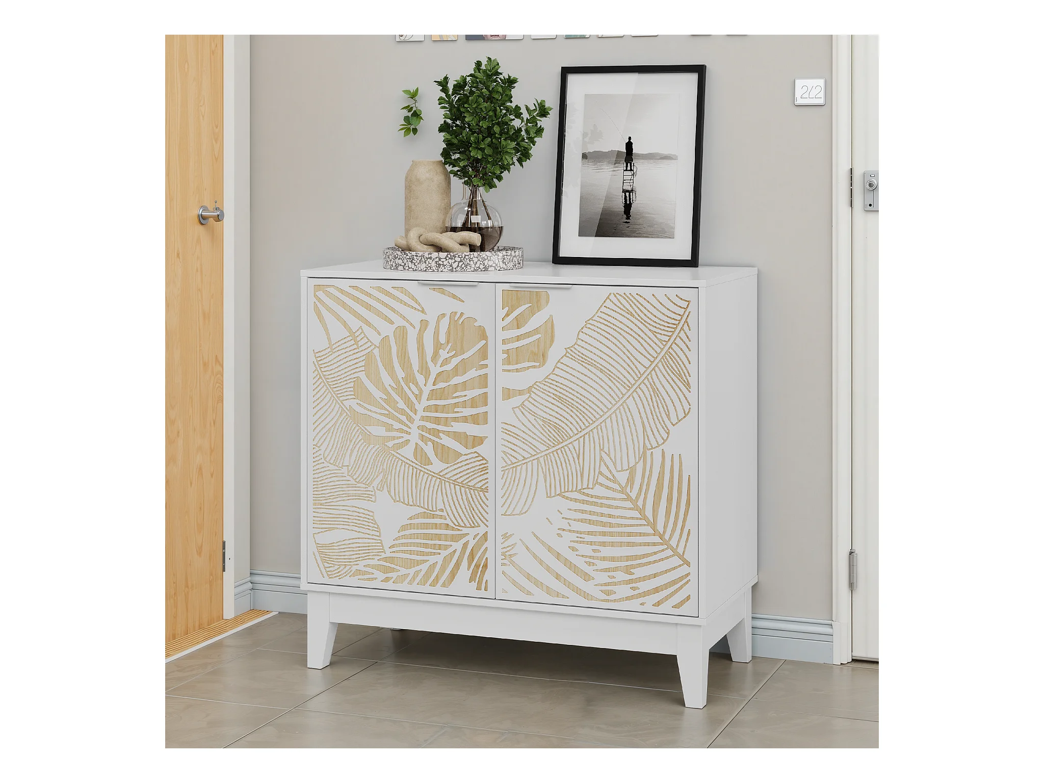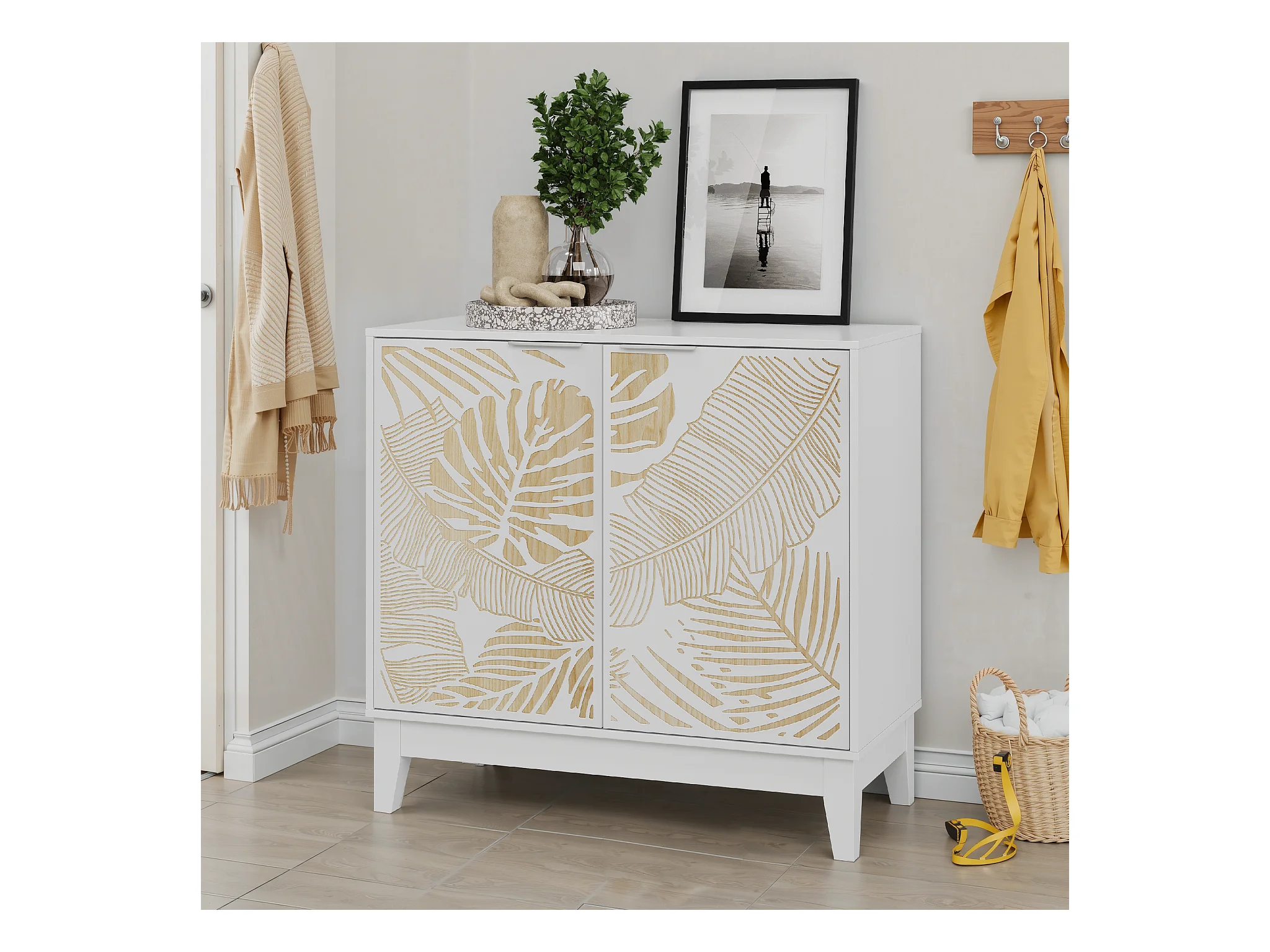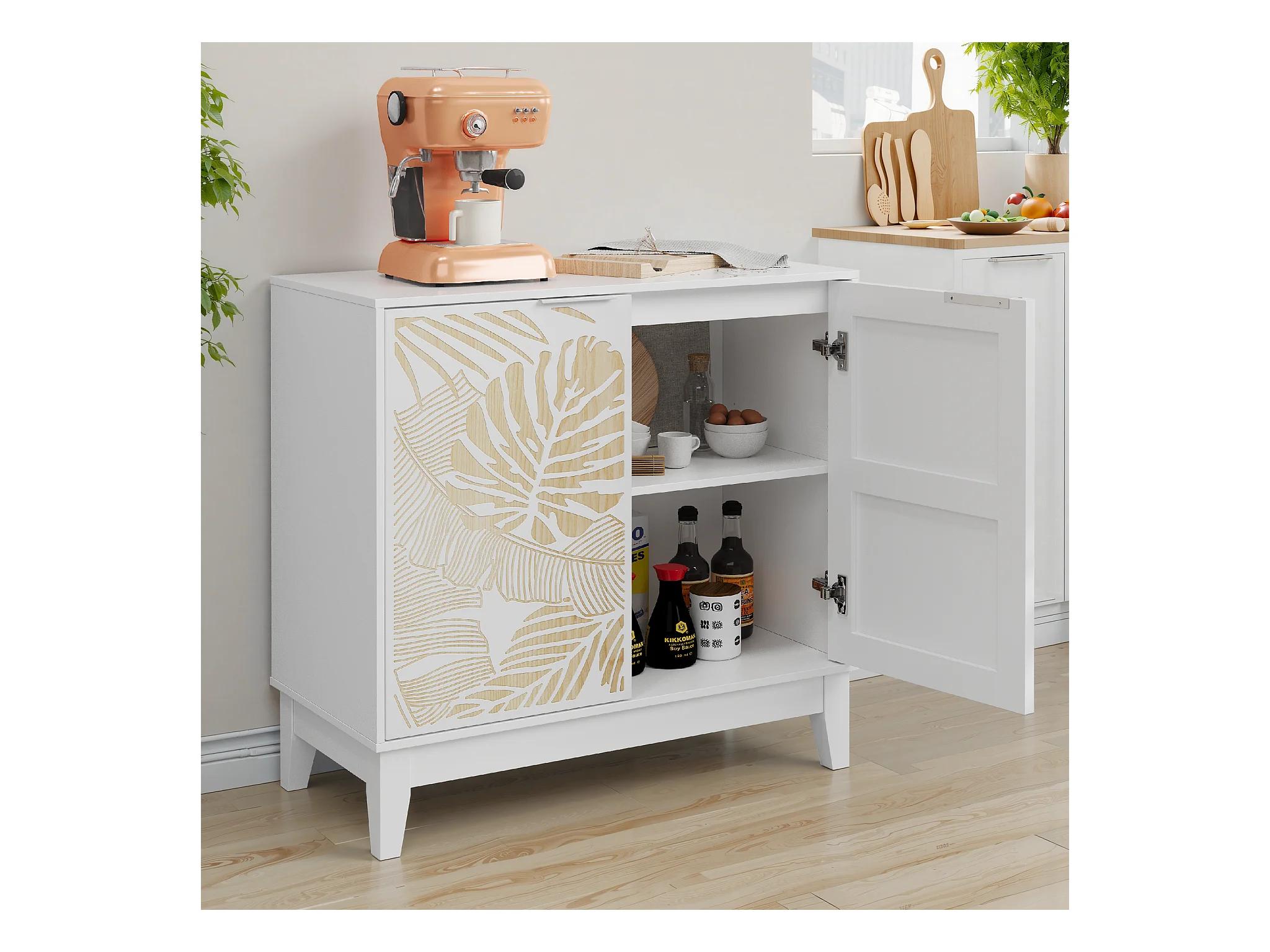 Buffet de buffet vintage avec sculpture florale, avec portes et étagères réglables, pour salon,Blanc