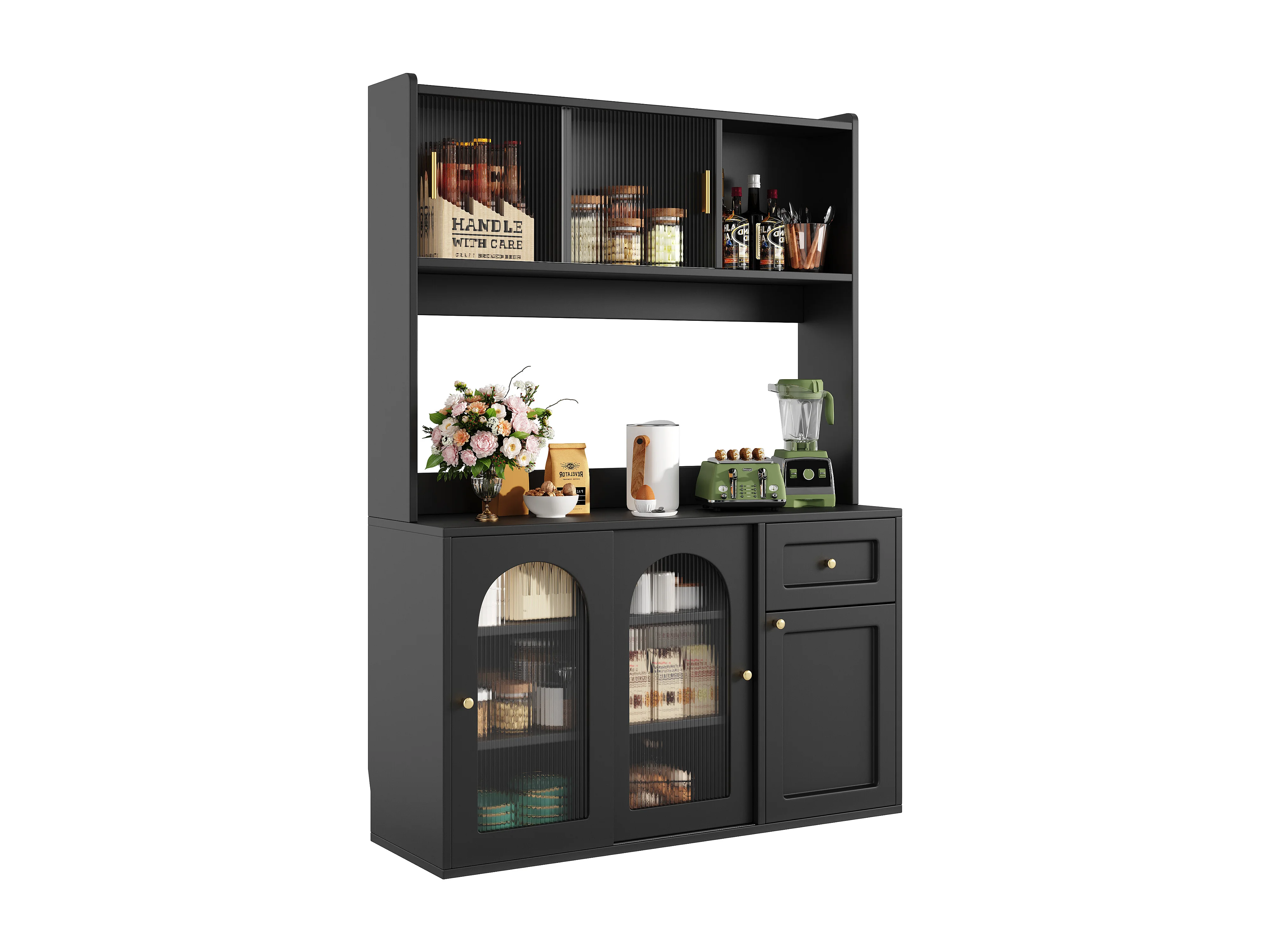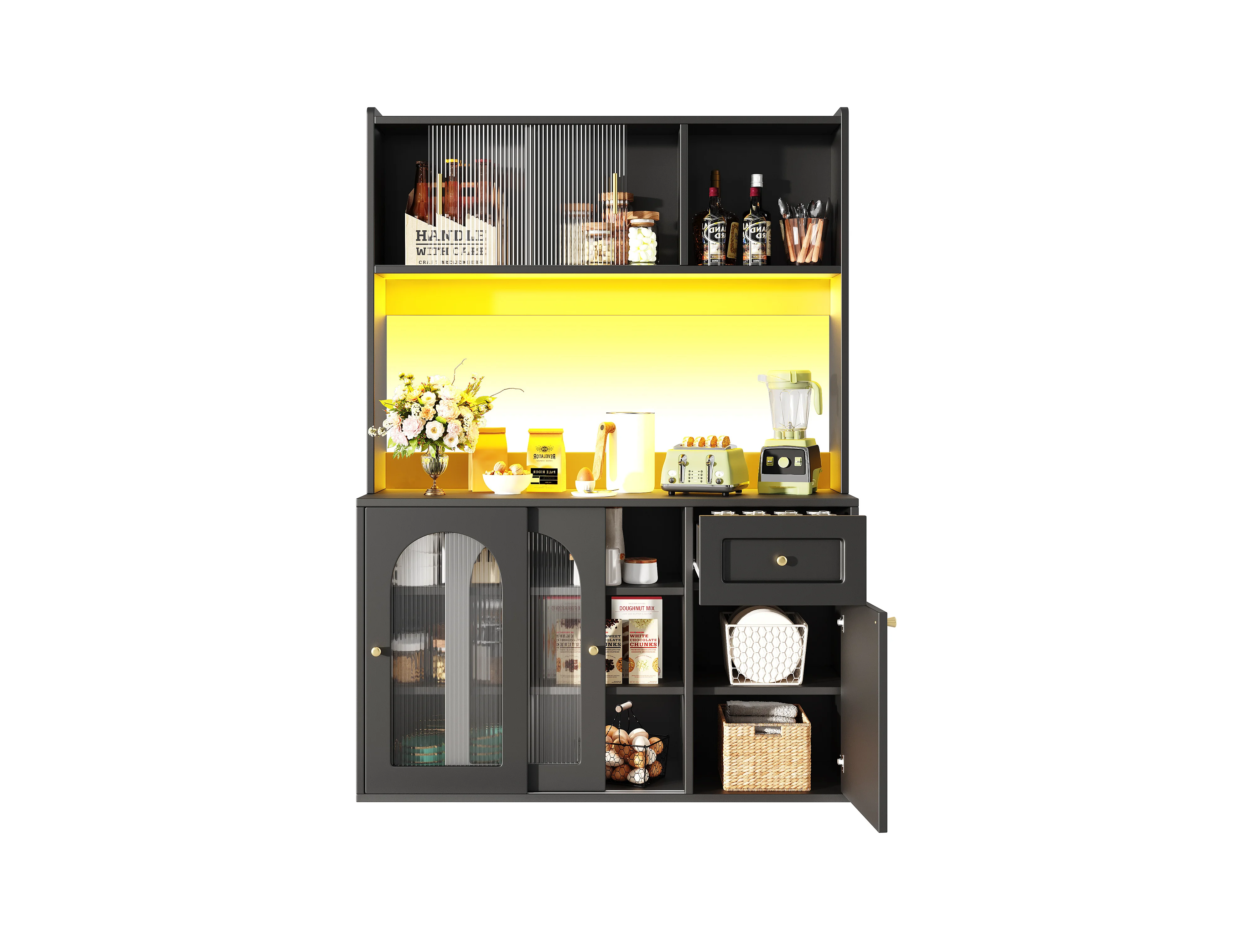 Buffet de cuisine 120x35x167cm - avec éclairage LED - 1 tiroir et 5 portes - étagères réglables - noir
