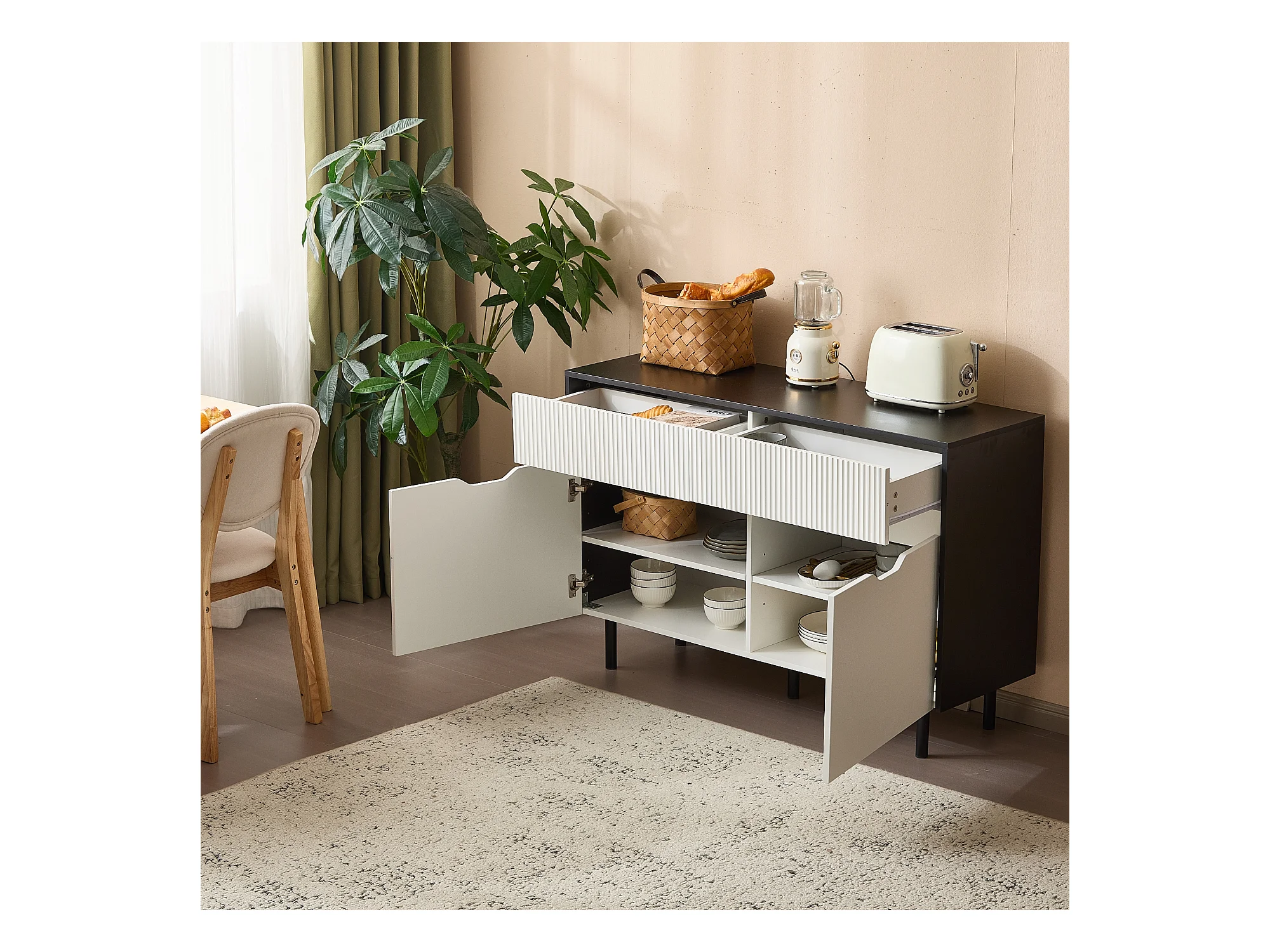 Buffet de cuisine 120x40x80cm avec 2 tiroirs et 2 portes, blanc et noir