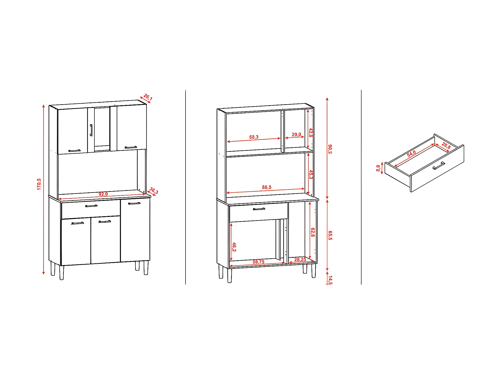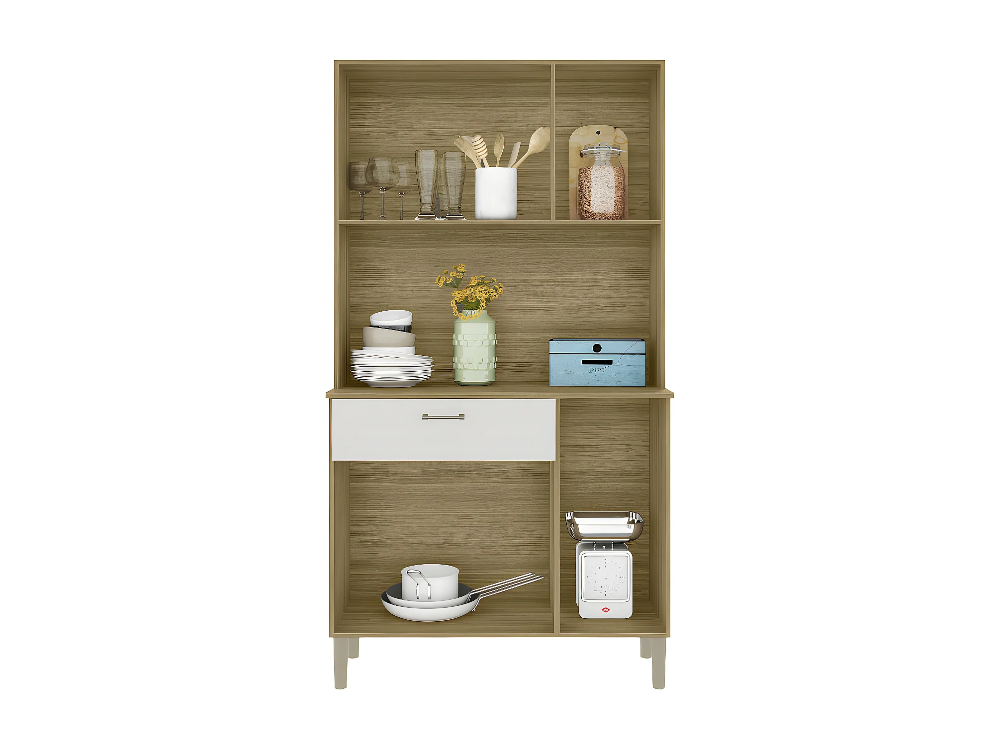 Buffet de Cuisine 6 Portes 1 Tiroir Chêne et Blanc 5 Niches L92 H170.5 P36.3 cm