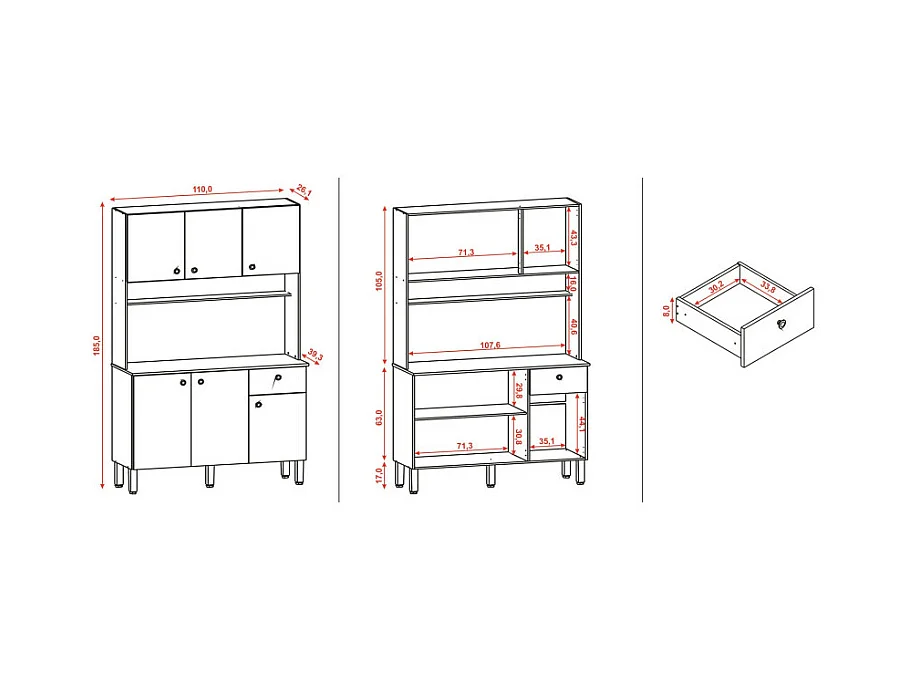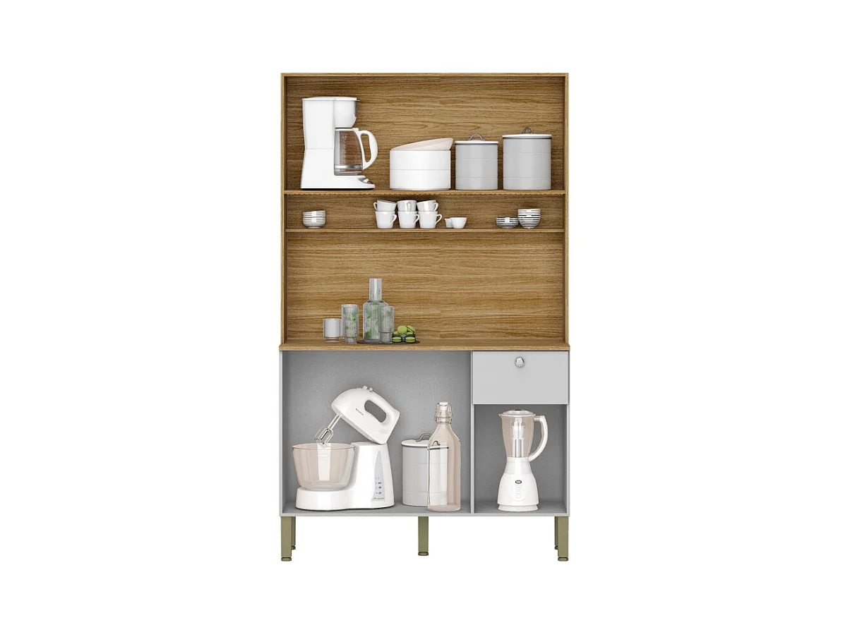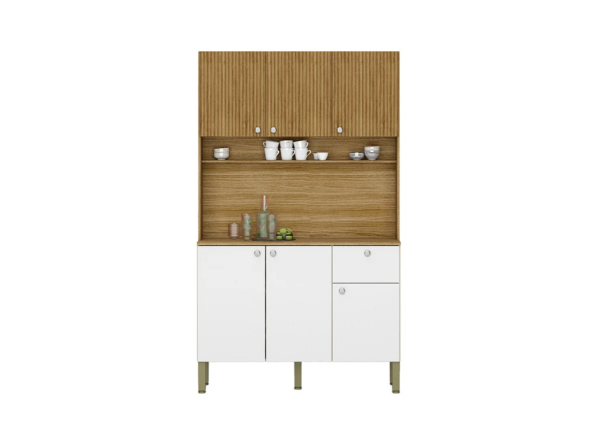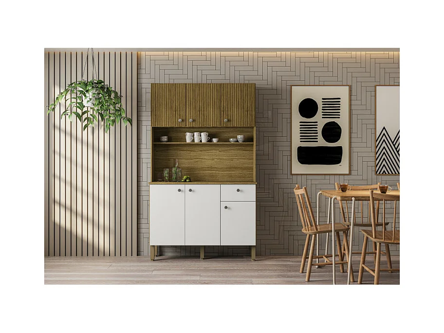 Buffet de Cuisine 6 Portes 1 Tiroir Chêne et Blanc 7 Niches L 111 H 185 P 39.3 cm