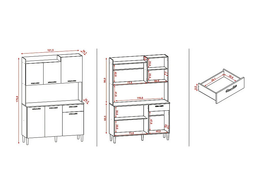 Buffet de Cuisine 6 Portes 1 Tiroir Chêne et Blanc L 121.5 H 176 P 36.3 cm