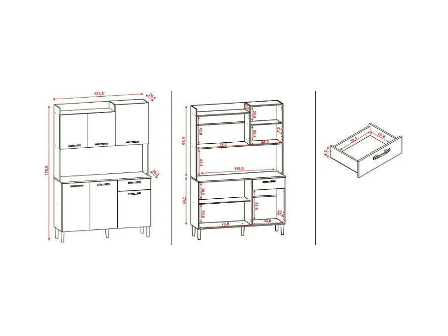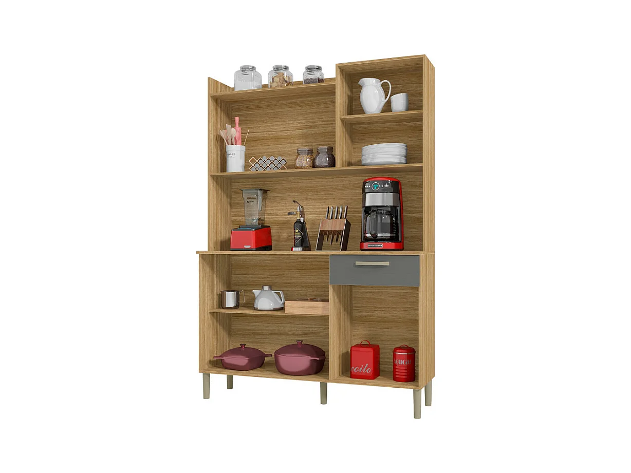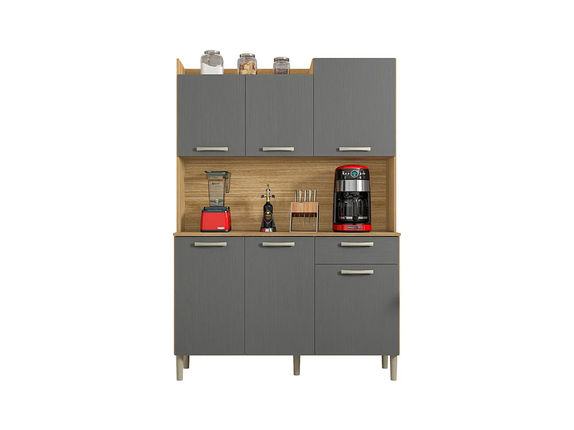 Buffet de Cuisine 6 Portes 1 Tiroir Chêne et Gris L 121.5 H 176 P 36.3 cm