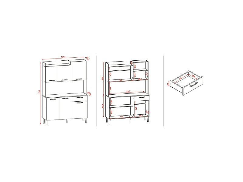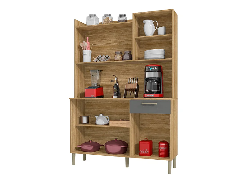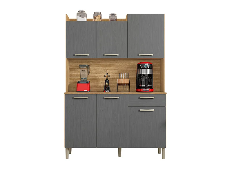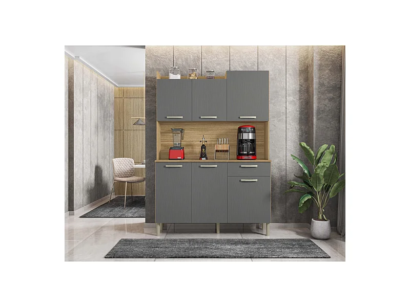 Buffet de Cuisine 6 Portes 1 Tiroir Chêne et Gris Largeur 122 cm