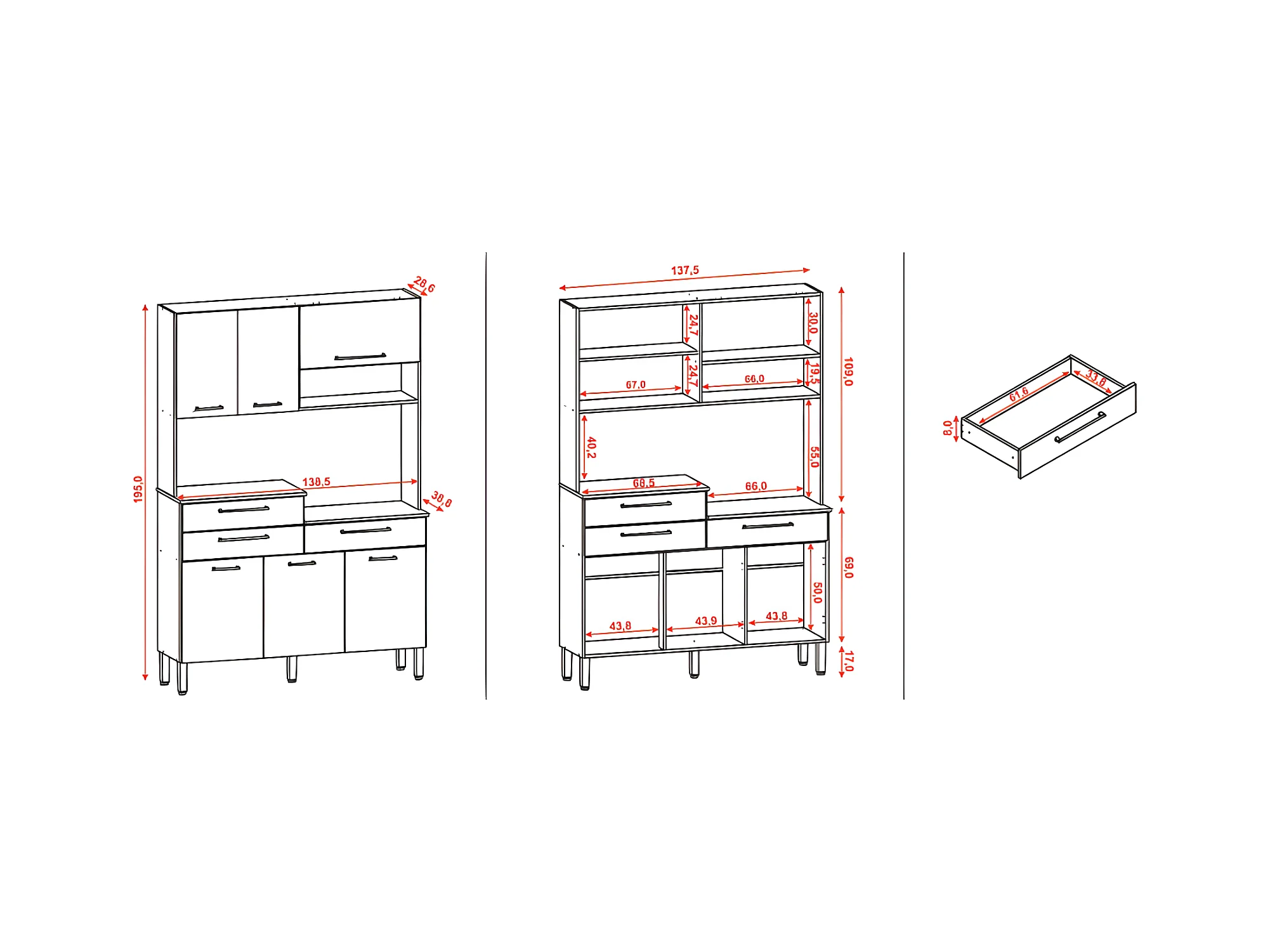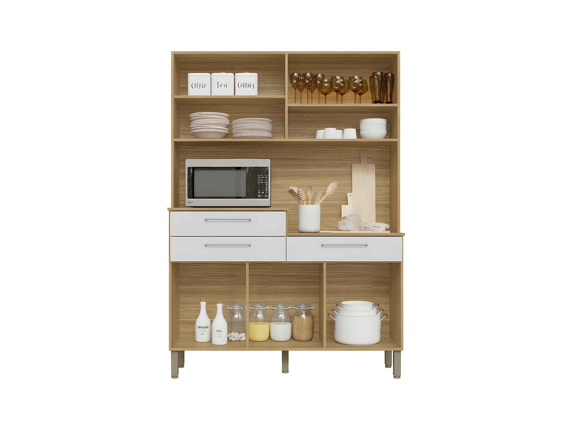 Buffet de Cuisine 6 Portes 3 Tiroirs 9 Niches Chêne Blanc L 138.5 x195 x38.8 cm