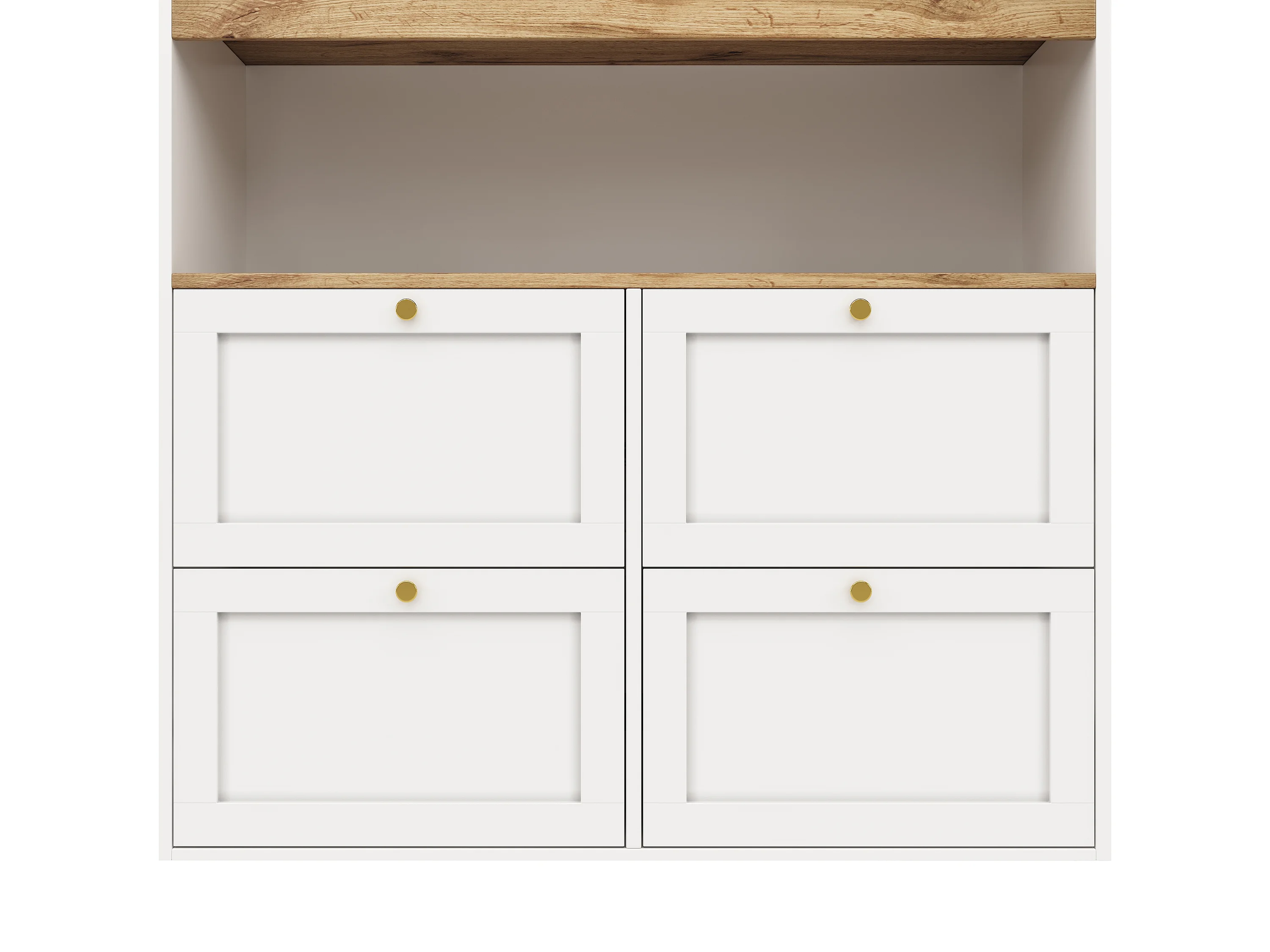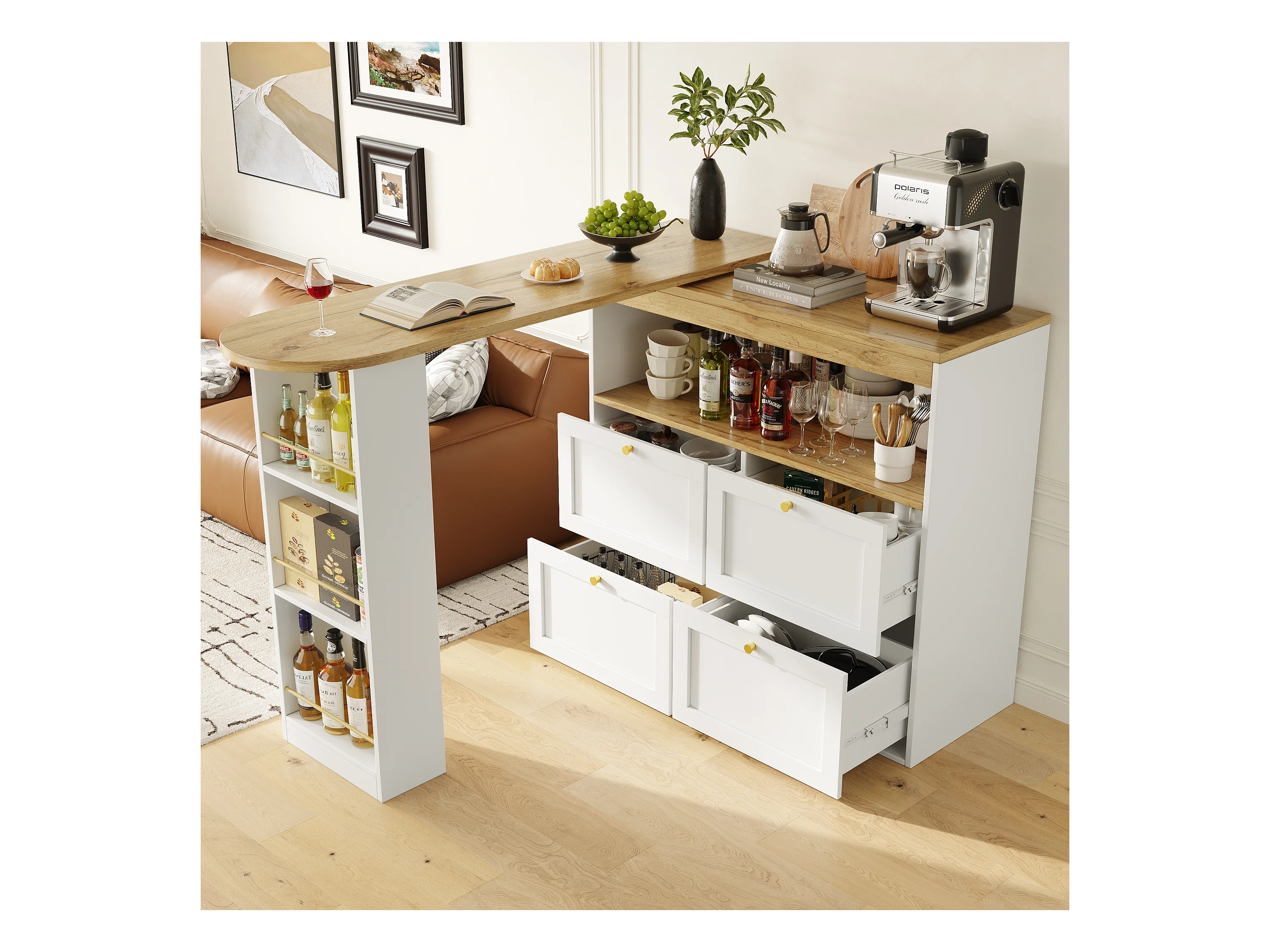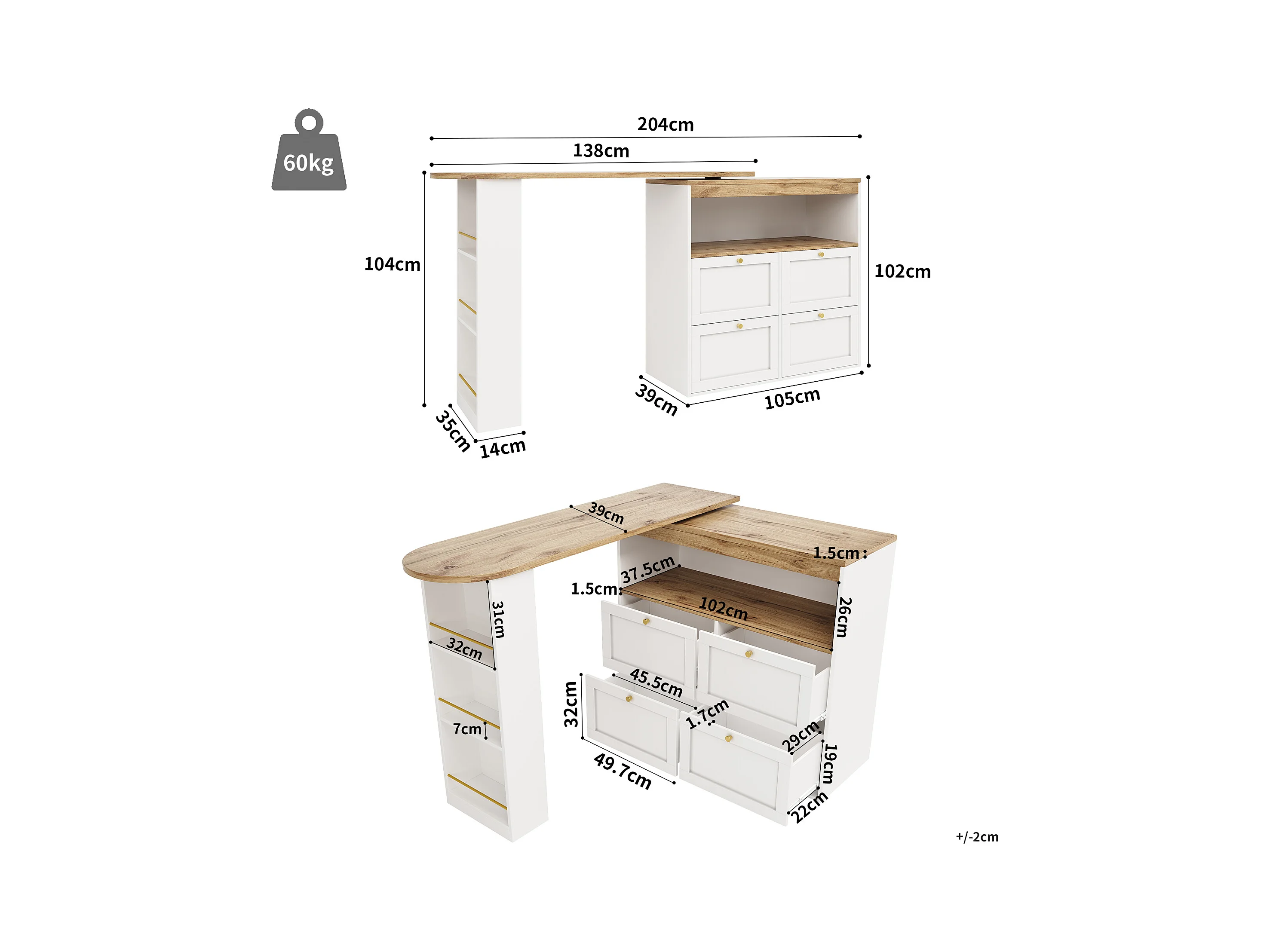 Buffet de cuisine avec plateau 360°pivotant, 4 tiroirs et 1 niche, blanc - 204x39x104cm