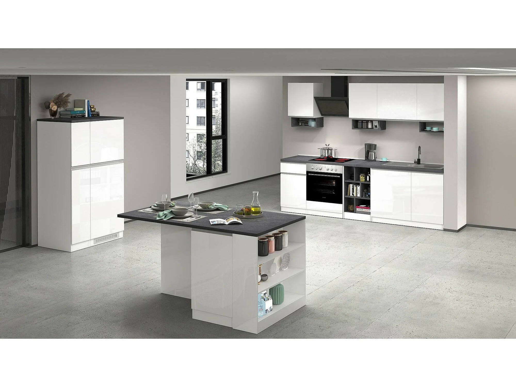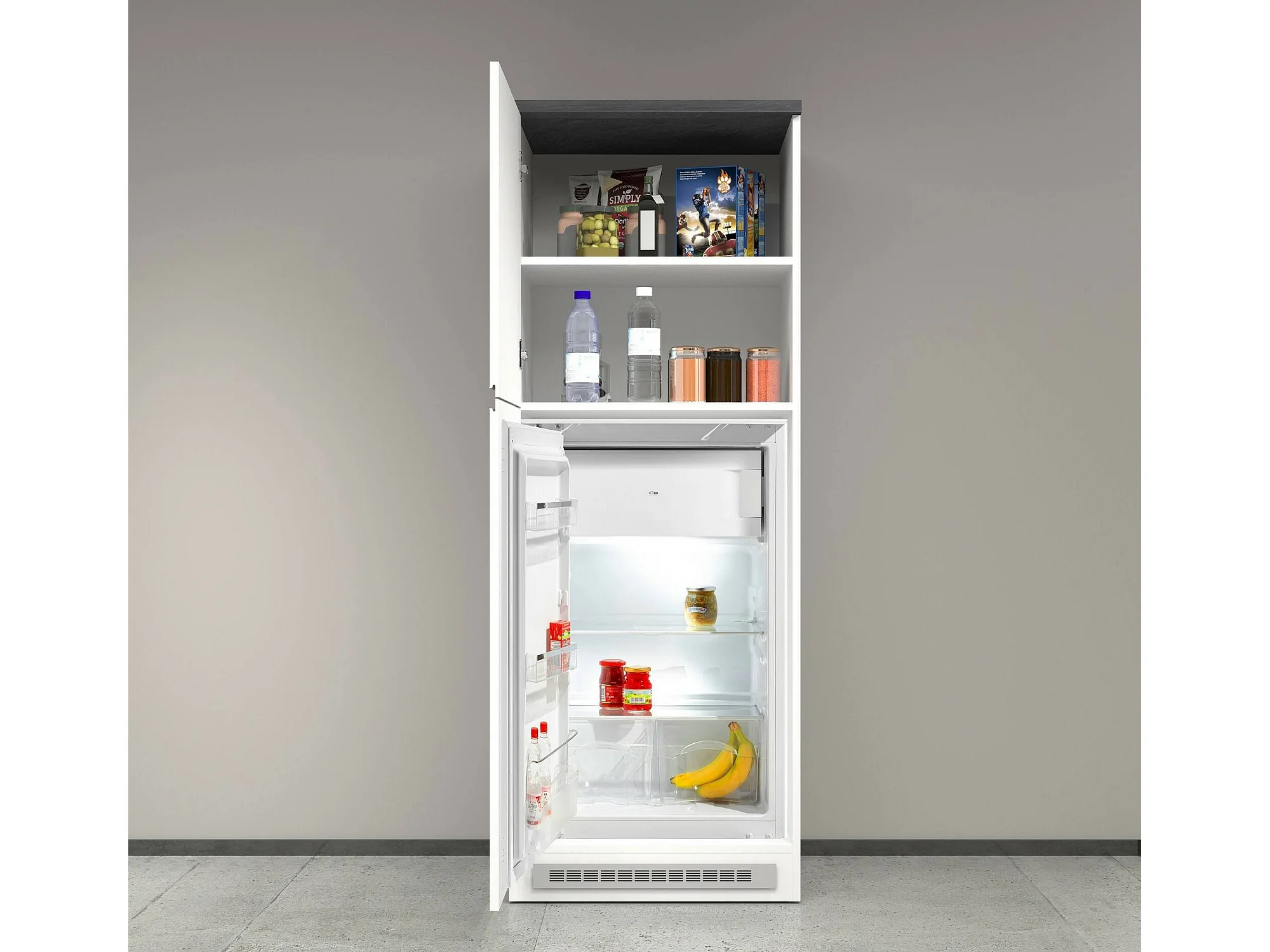 Despensa de cocina Dcasasol, Armario multiusos, Mueble cocina, Soporte multifuncional para frigorífico, 100% Made in Italy, 60x60h165 cm, Blanco brillo y pizarra