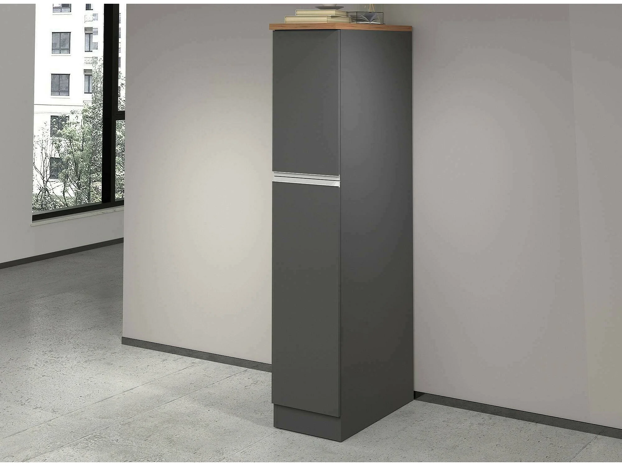 Küchenschrank Dcasiragh, Mehrzweckschrank, Küchenzeile Schrank, Multifunktionales Kühlregal, 100 % Made in Italy, 30 x 60 x 165 cm, Anthrazit und Eiche