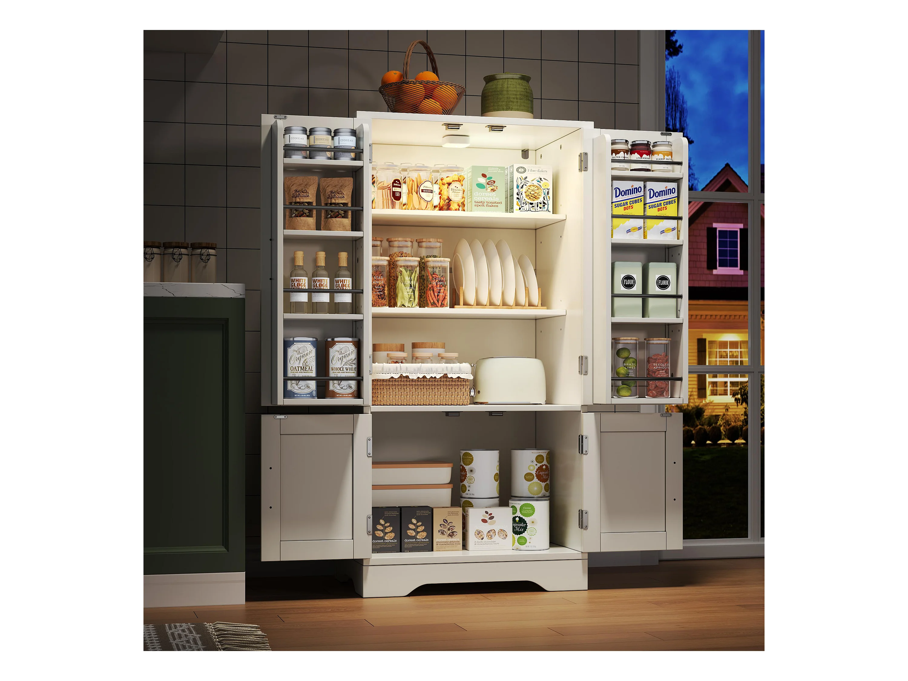 Buffet Dzorte, Buffet du salon, Commode de salon, Garde-manger de cuisine, 72x40 h185 cm, Blanc et Chêne clair