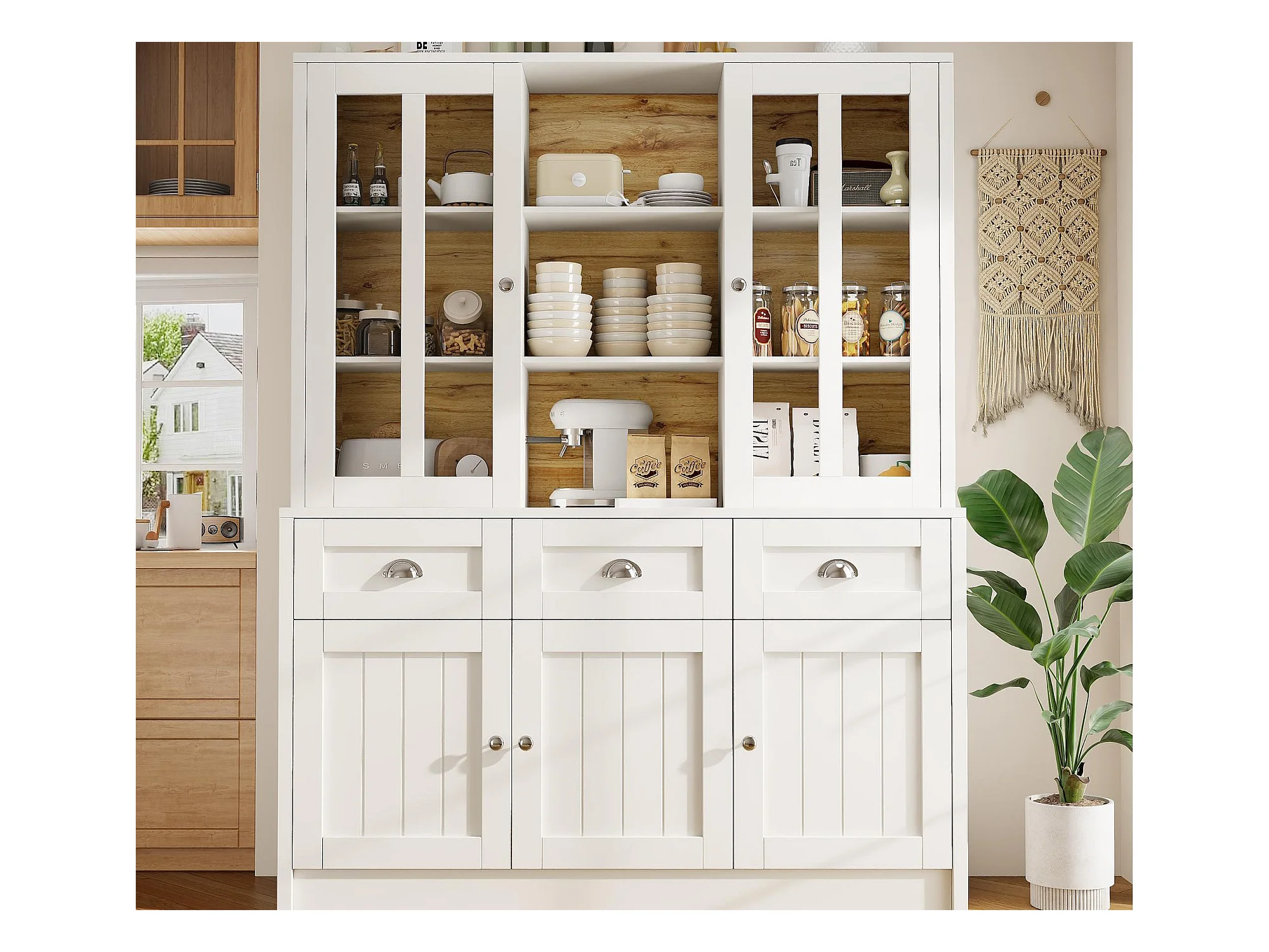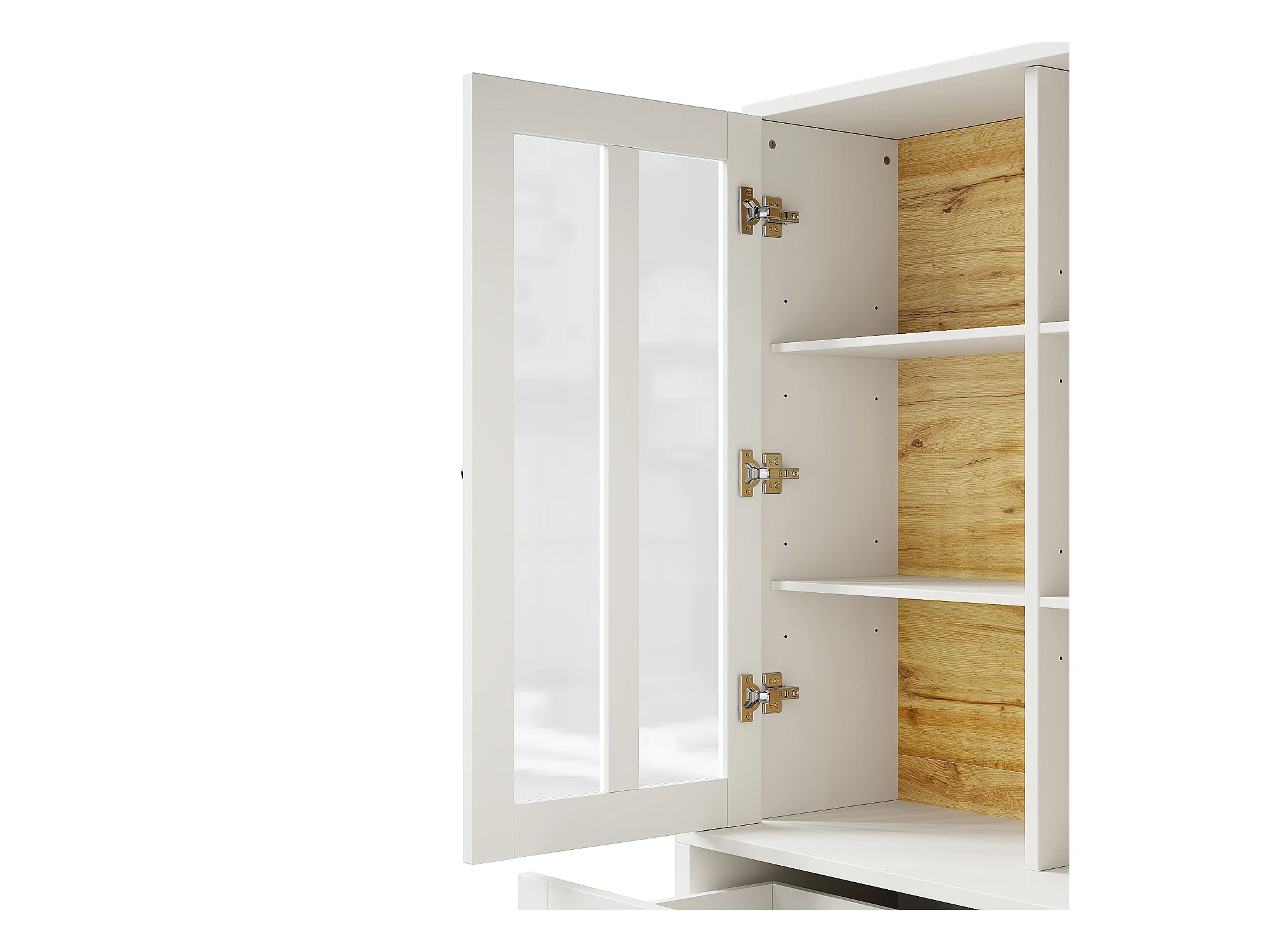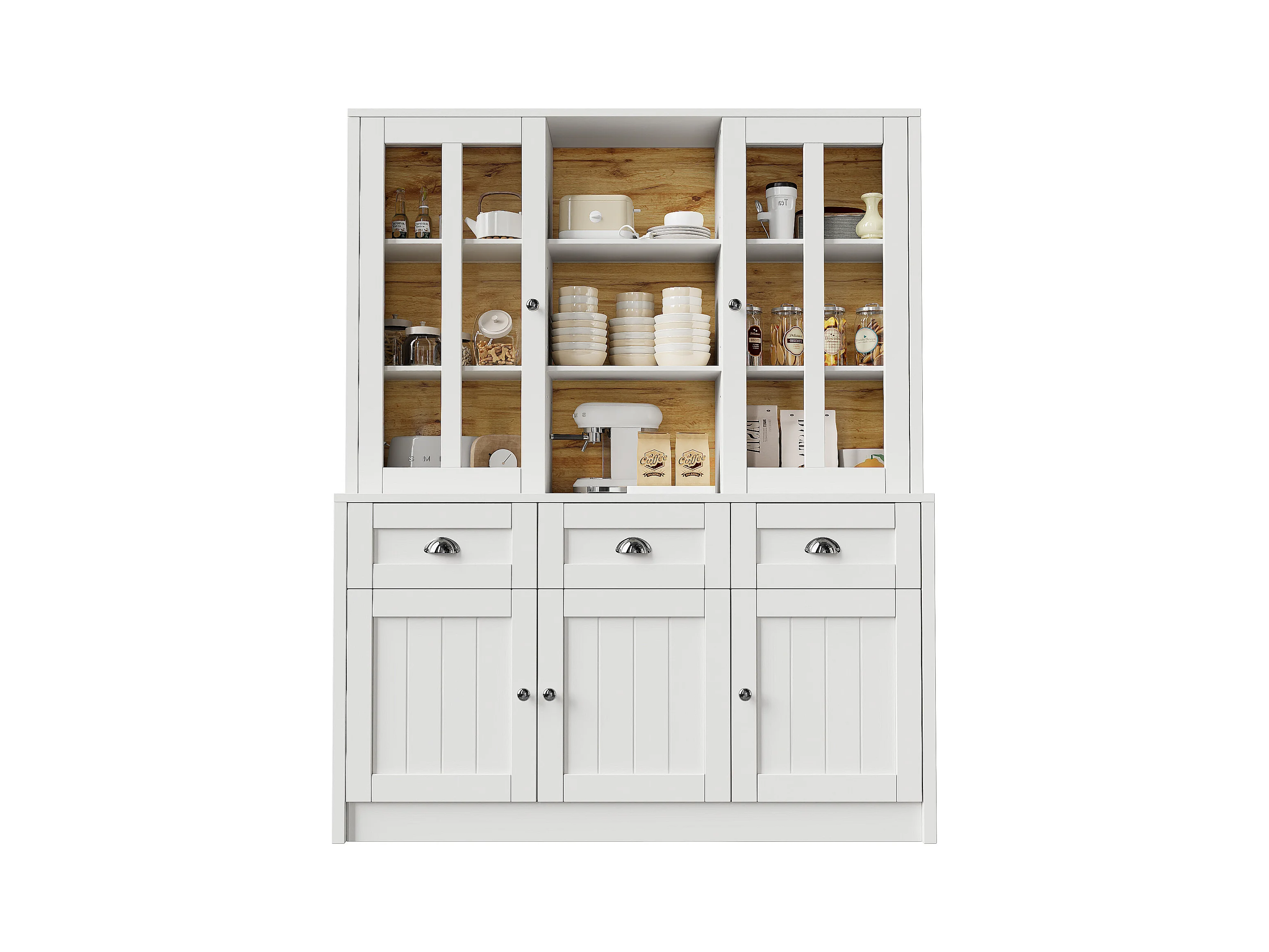 Buffet de cuisine moderne 140x38.5x175 cm - 5 portes + 3 tiroirs + 9 étagères - blanc