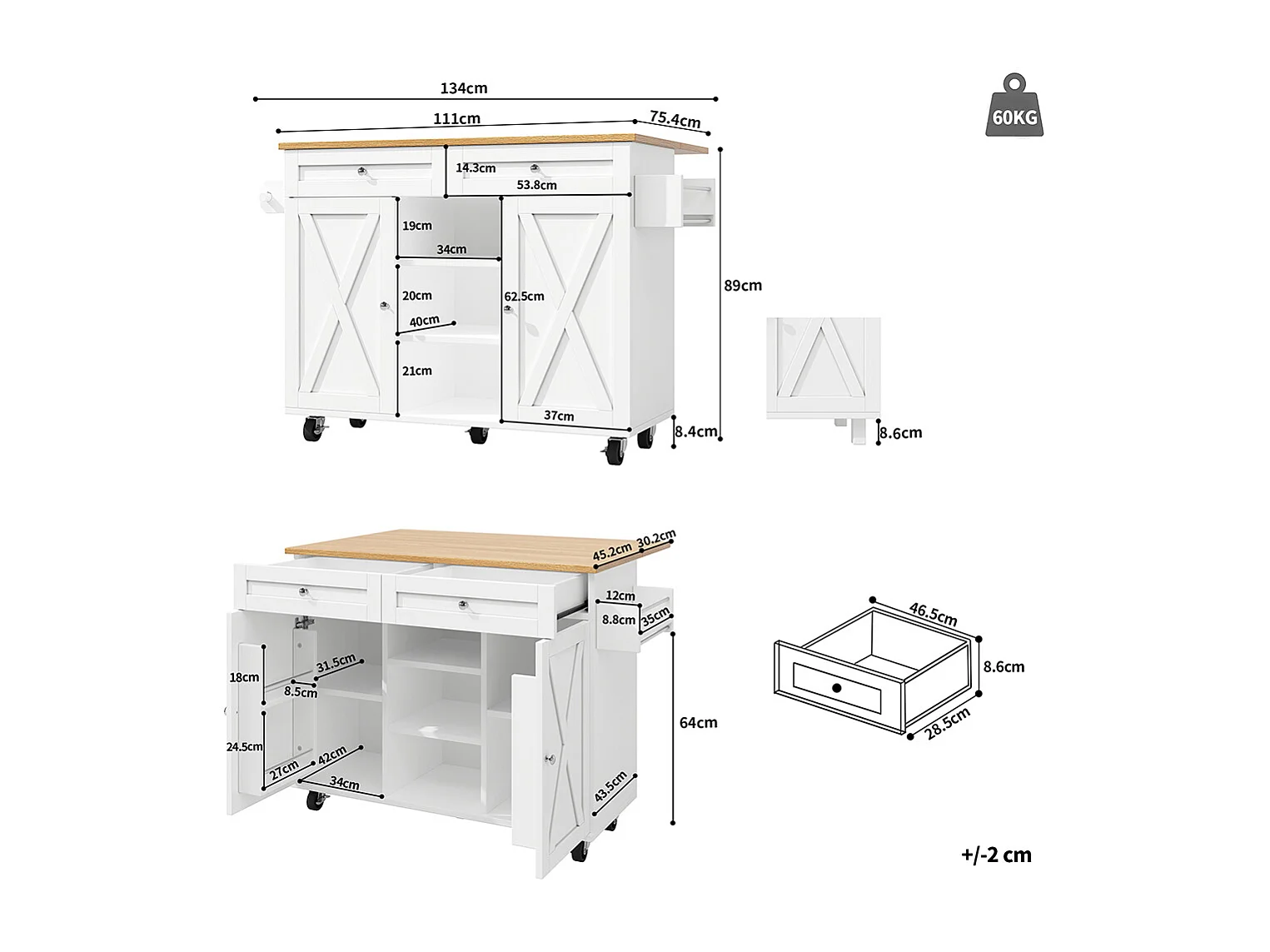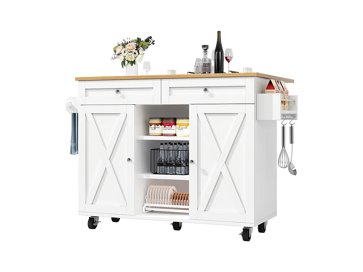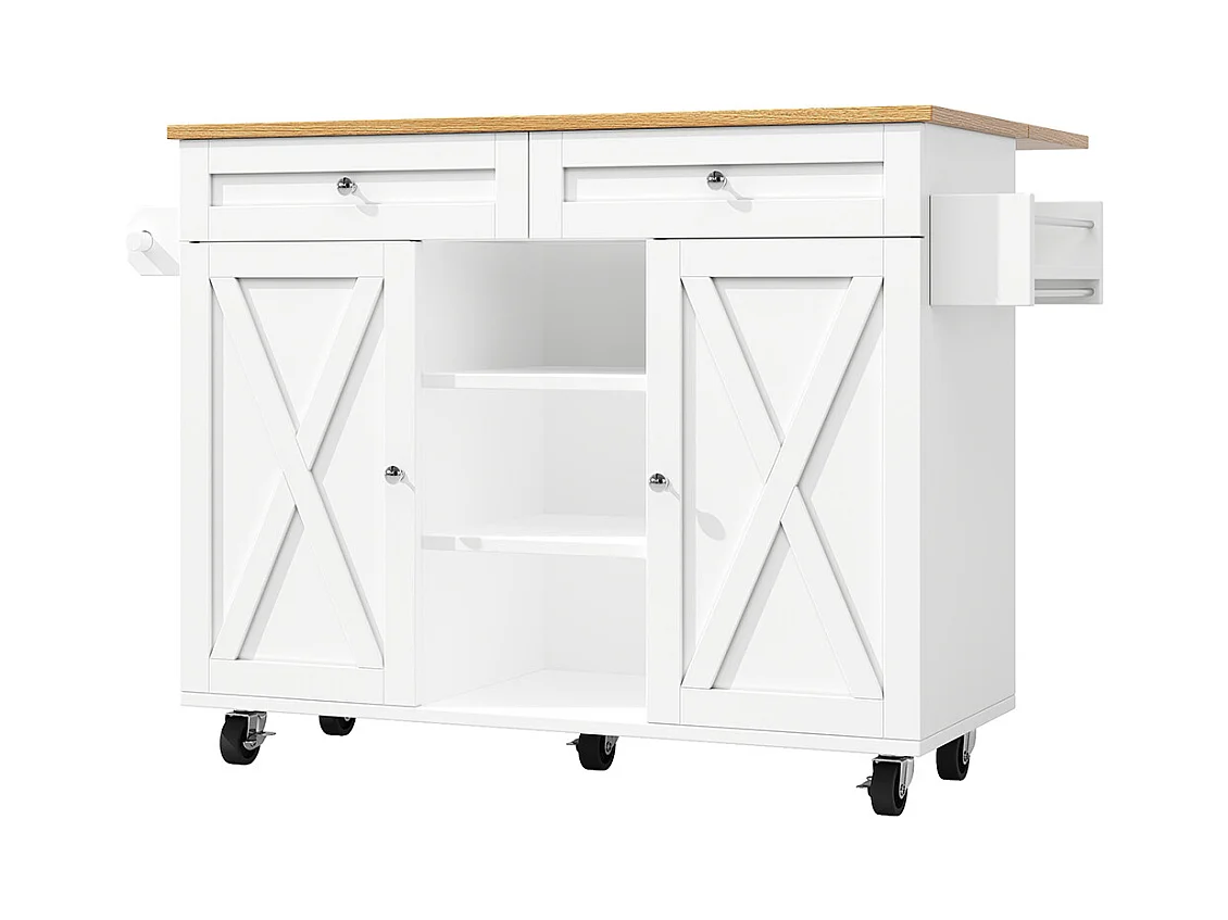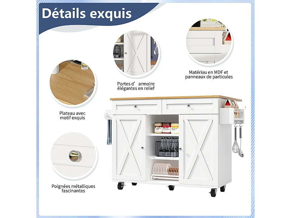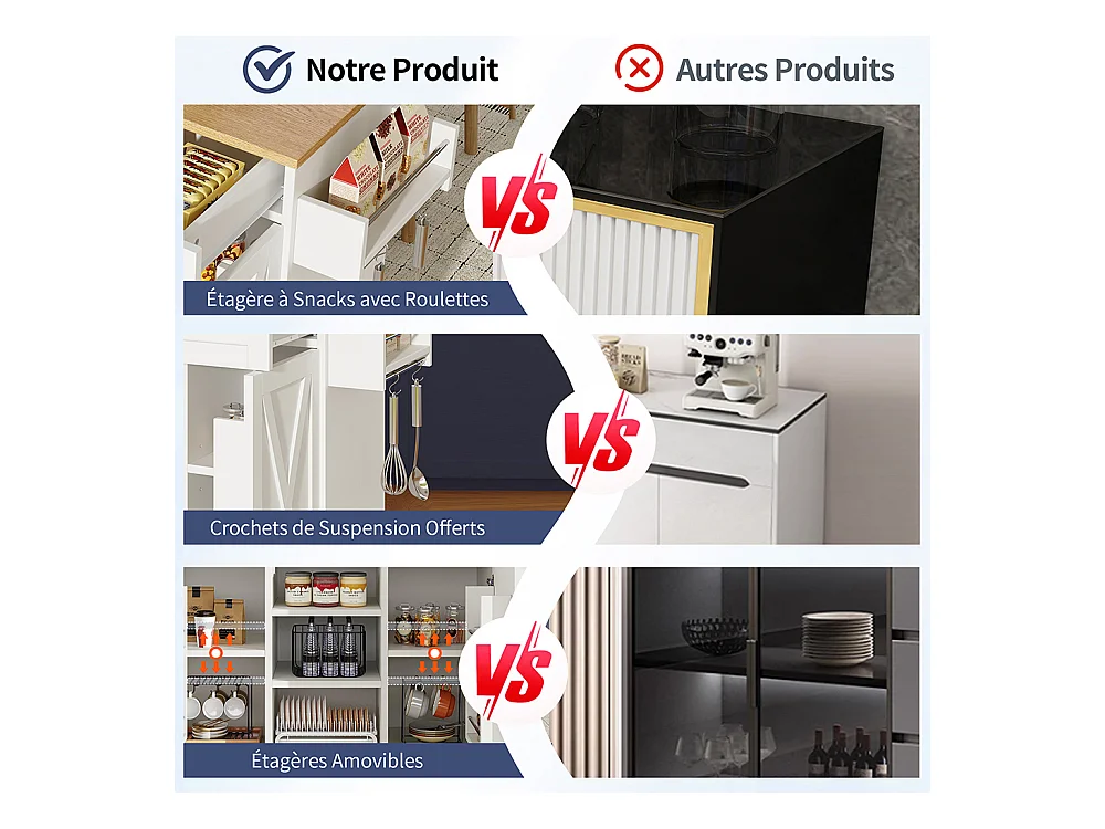 Buffet de cuisine moderne chariot service grain de bois table à manger multifonctionnelle espace rangement étagères snacks blanc