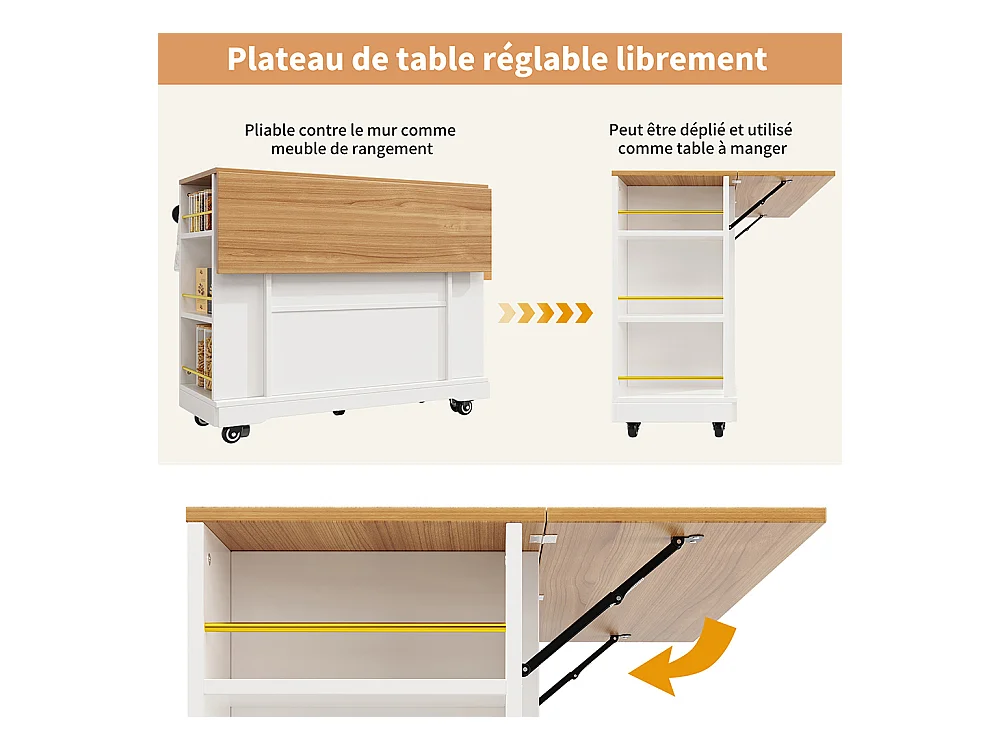 Buffet de cuisine moderne desserte veinures bois table à manger multifonctionnelle espace rangement desserte armoires extensibles blanc