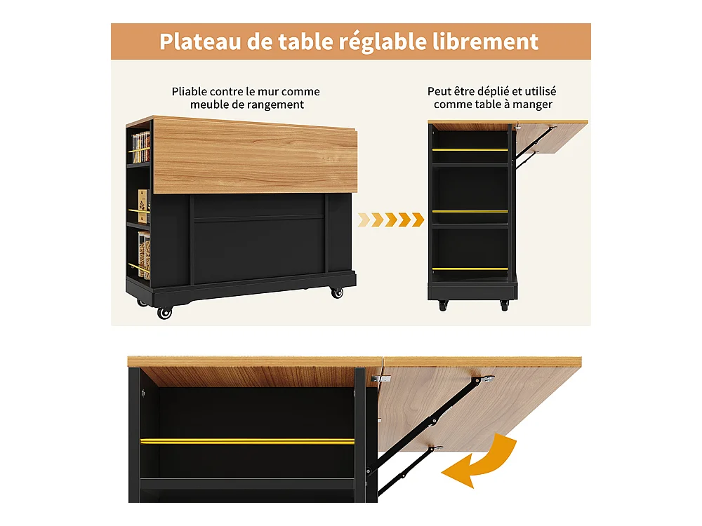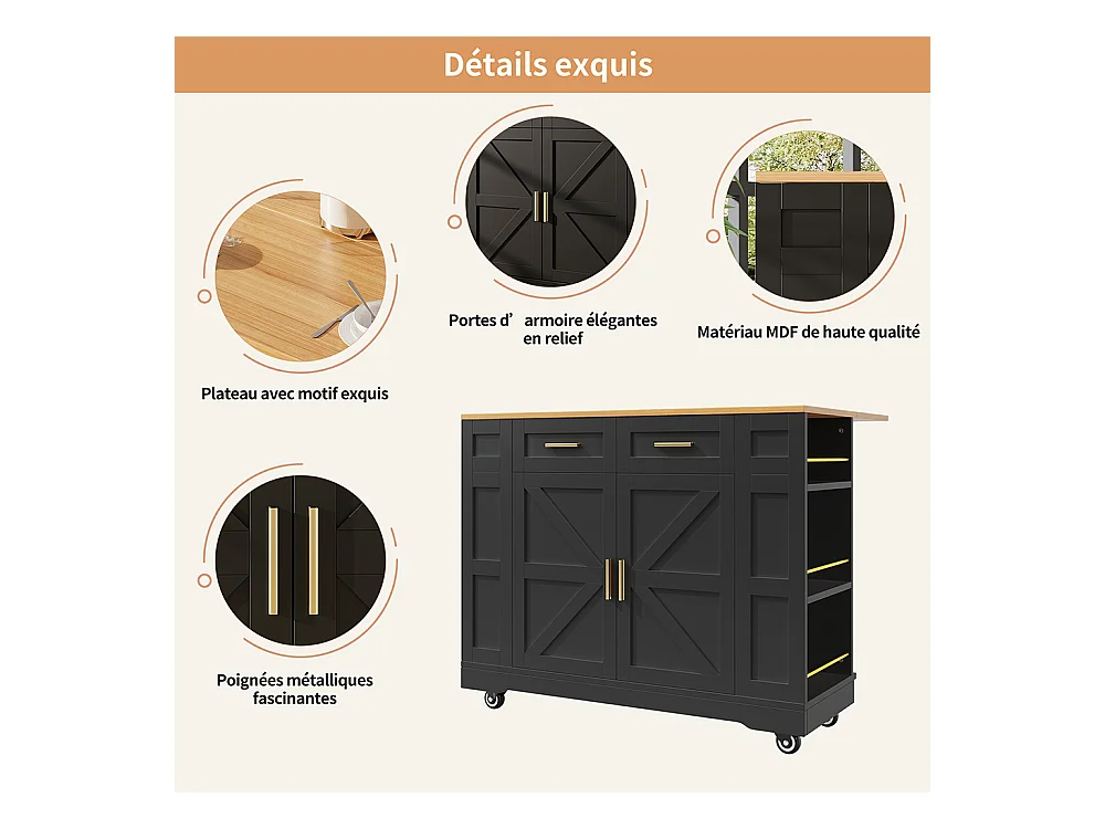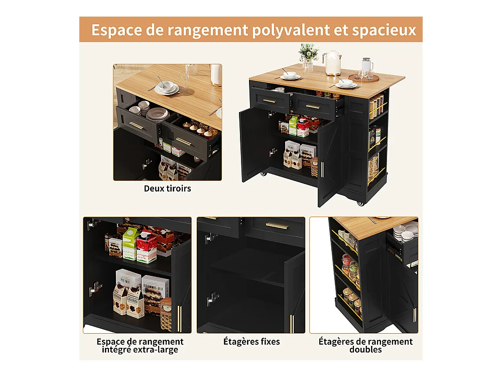Buffet de cuisine moderne desserte veinures bois table à manger multifonctionnelle espace rangement desserte armoires extensibles noir