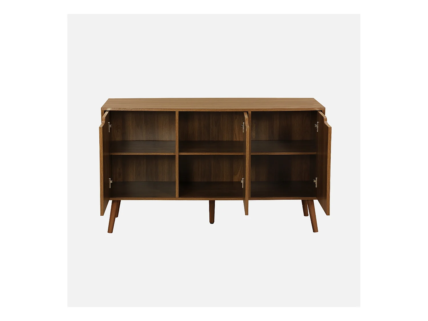 Buffet de rangement effet bois de noyer 3 portes et 3 étagères. buffet bas. 120cm