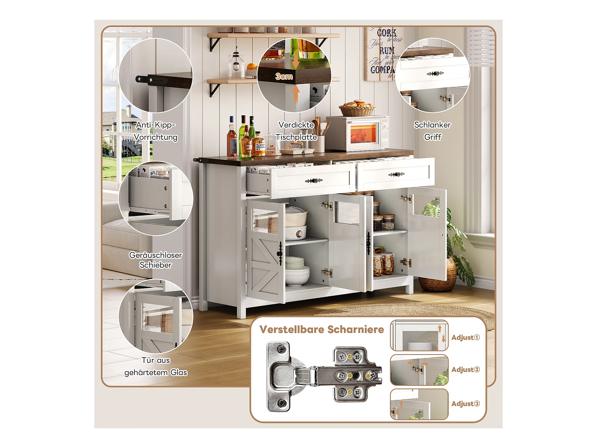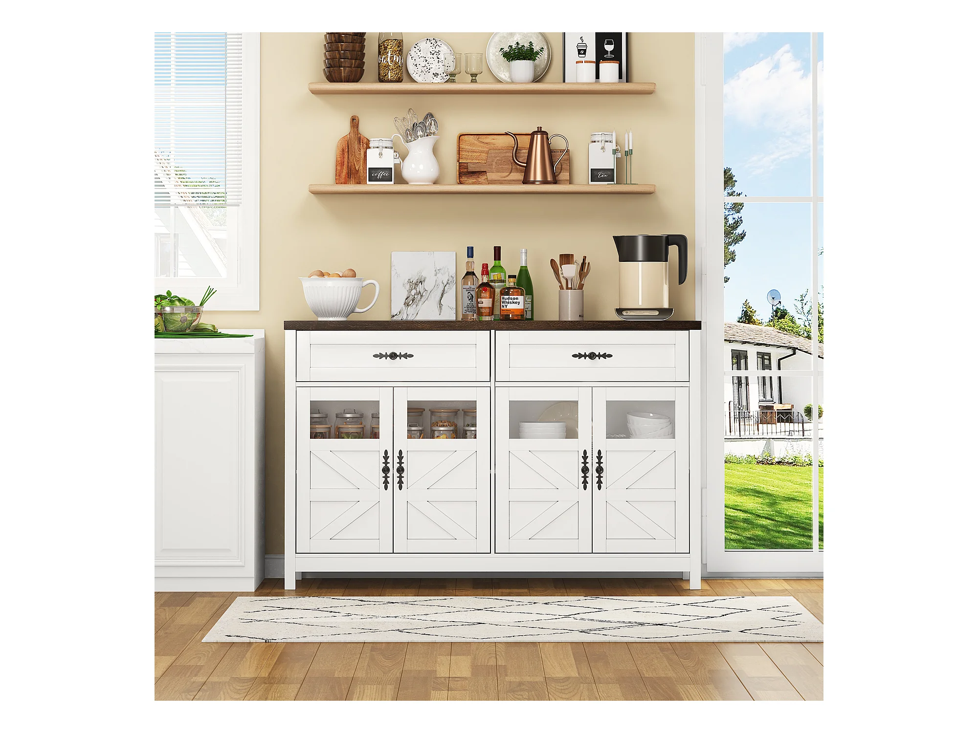 Buffet de salle avec rangement - 140 x 90 x 39 cm - avec 4 portes + 2 grands tiroirs - MDF - blanc