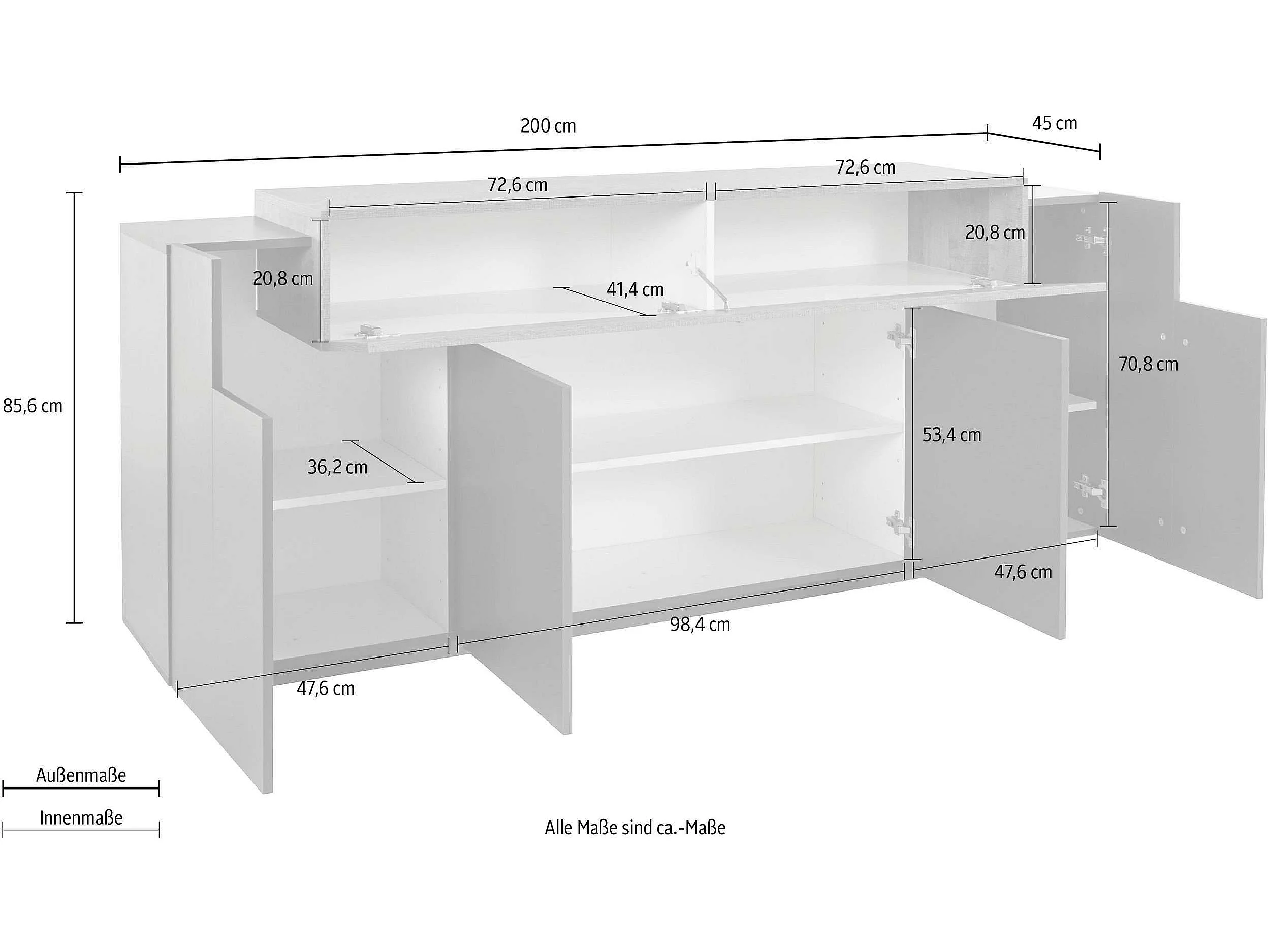 Buffet de salon noir et bois 200cm 4 placards Corona Side Hound