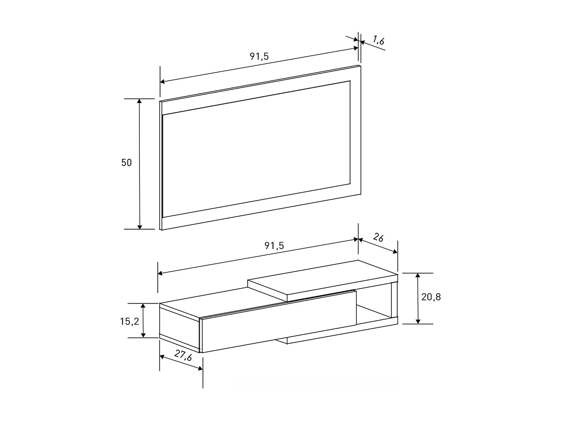 Buffet d'entrée, meuble d'entrée coloris beige + miroir - longueur 91,50 x profondeur 26 x hauteur 65,2 cm