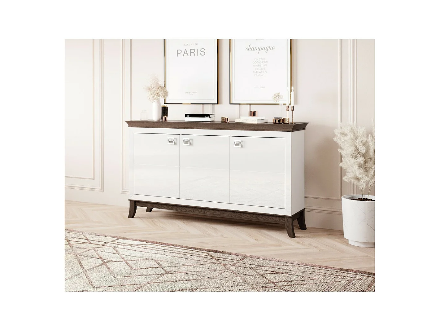 Buffet design 160cm pour salon couleur blanc et chêne foncé, collection PALACE.