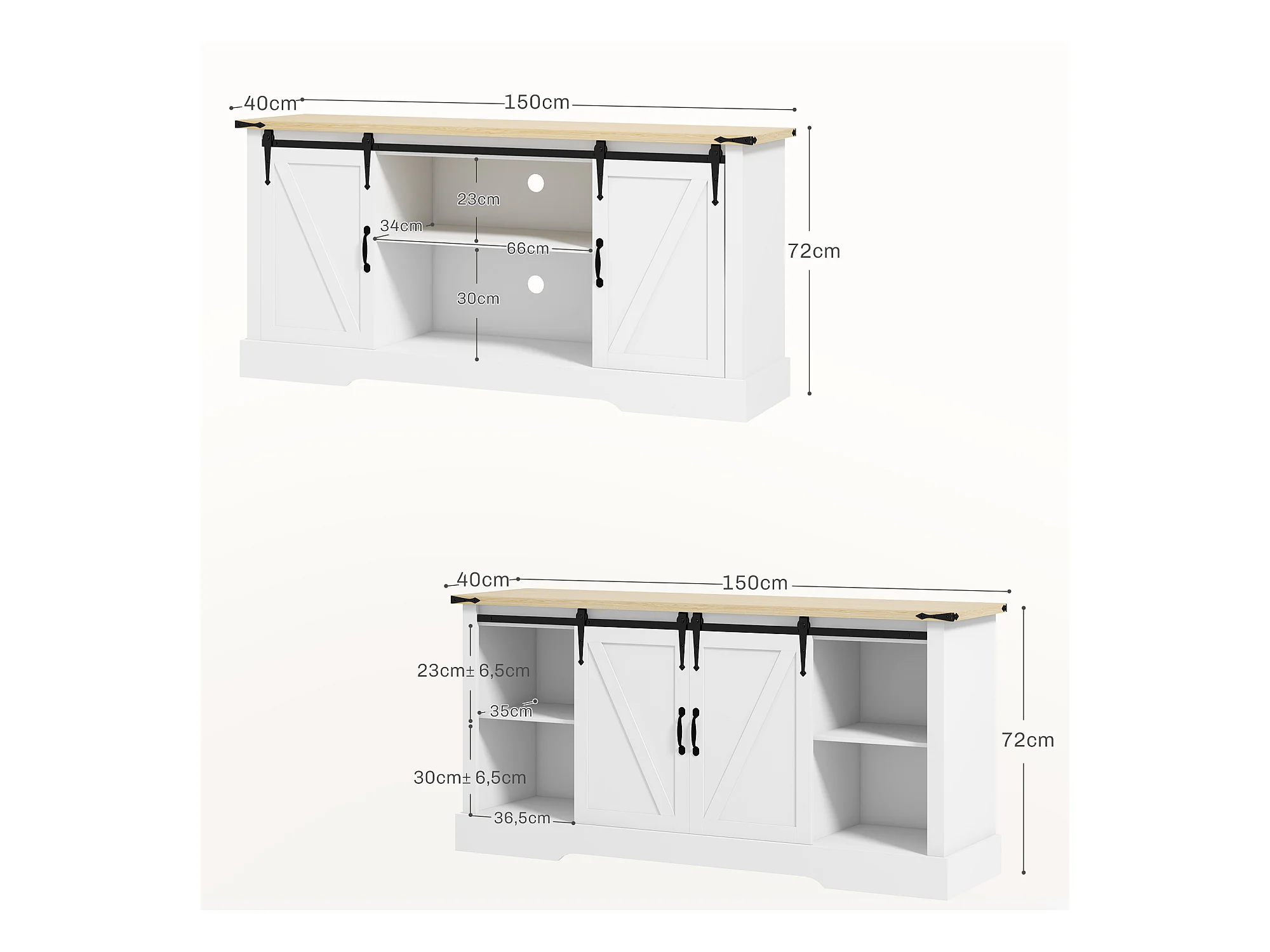 Buffet design 2 portes coulissantes 3 étagères - dim. 150L x 40l x 72H cm - blanc aspect bois clair