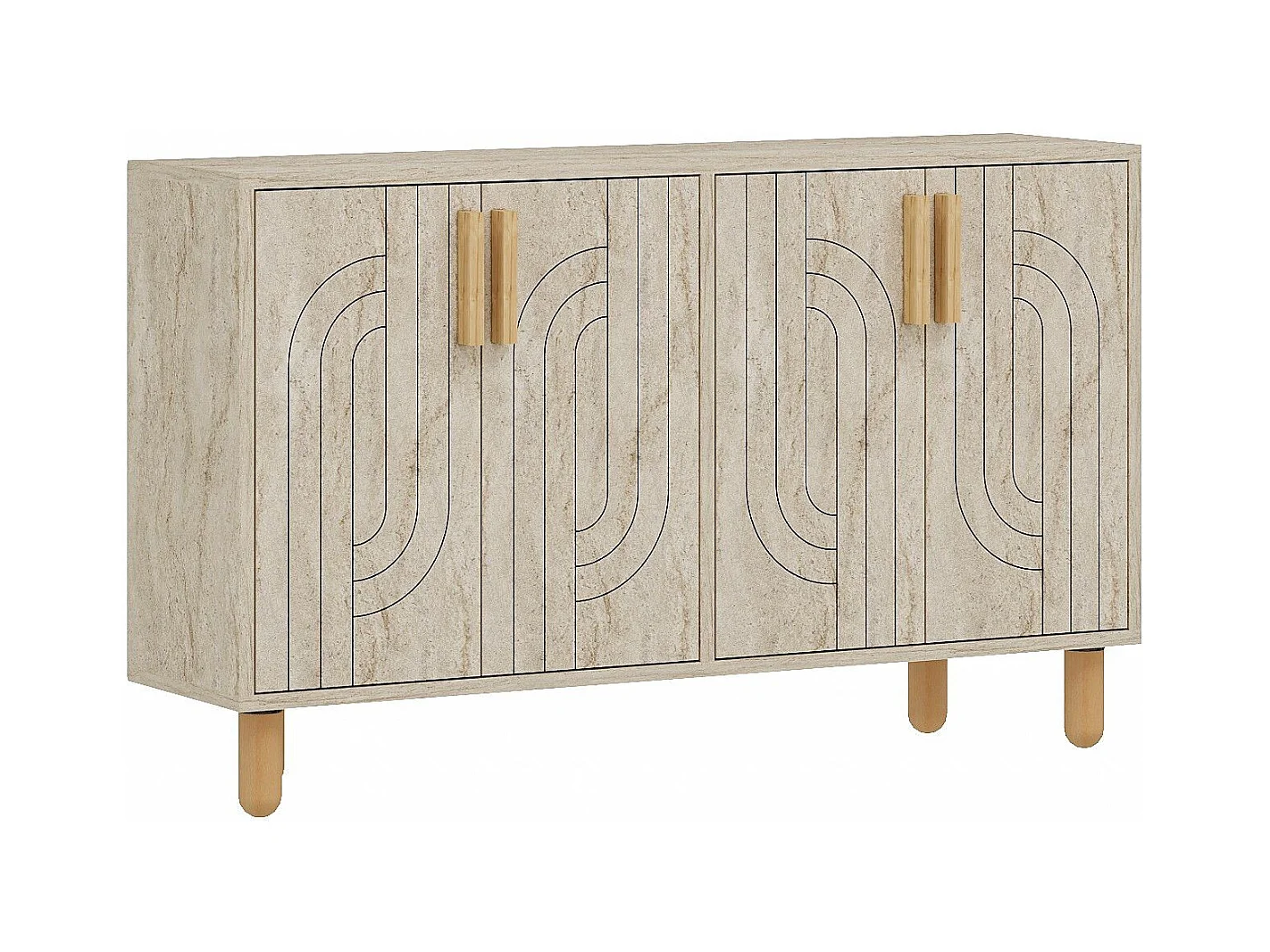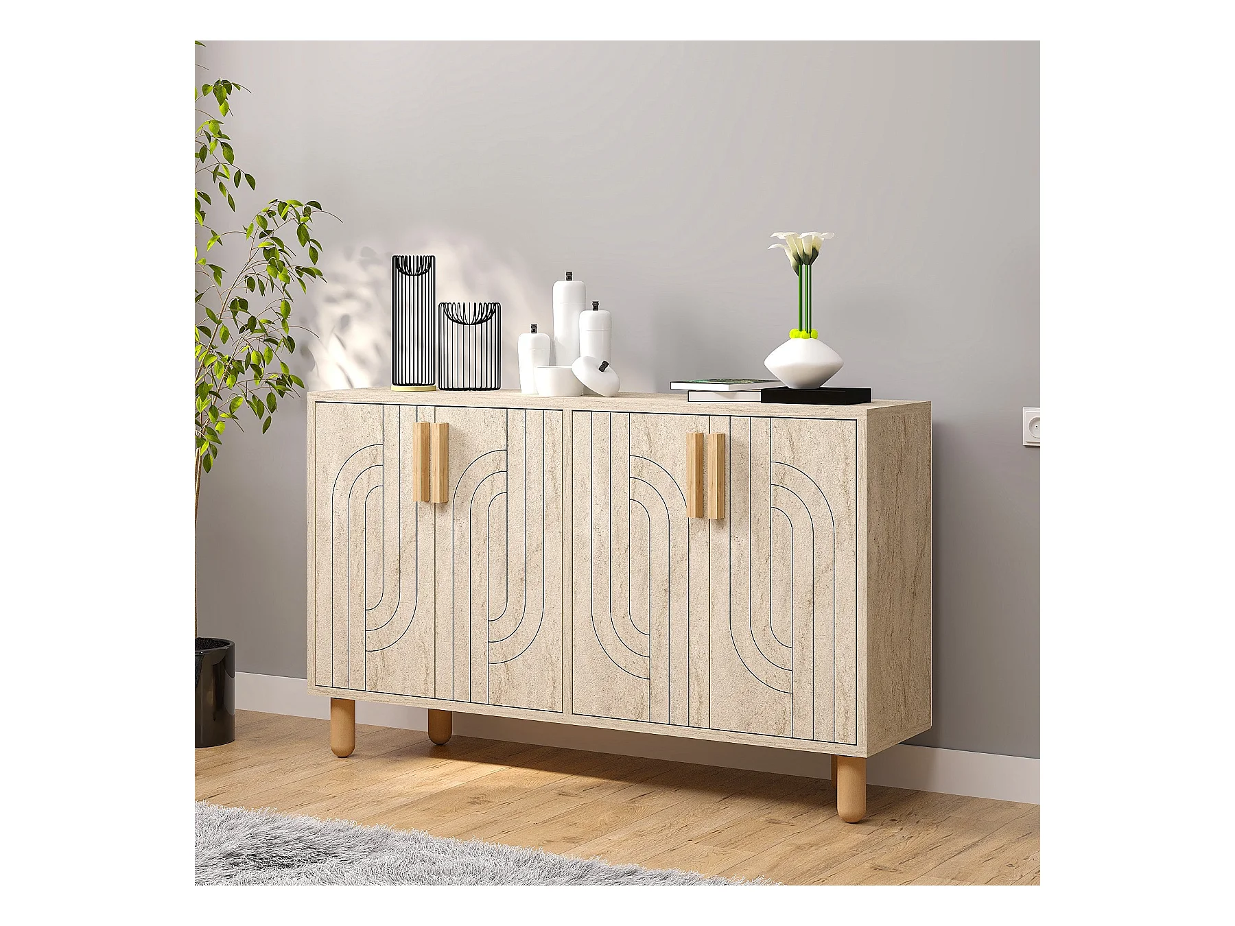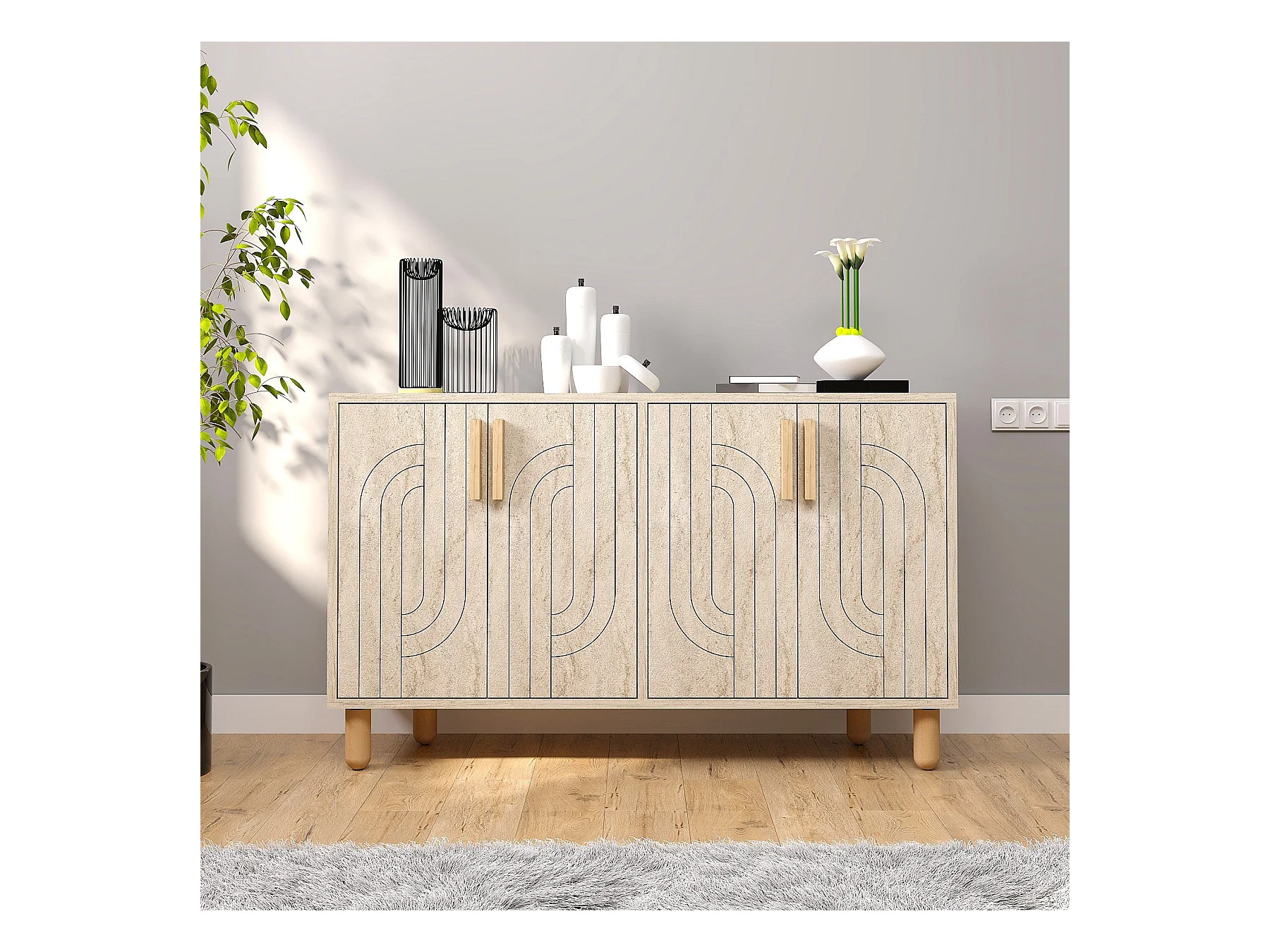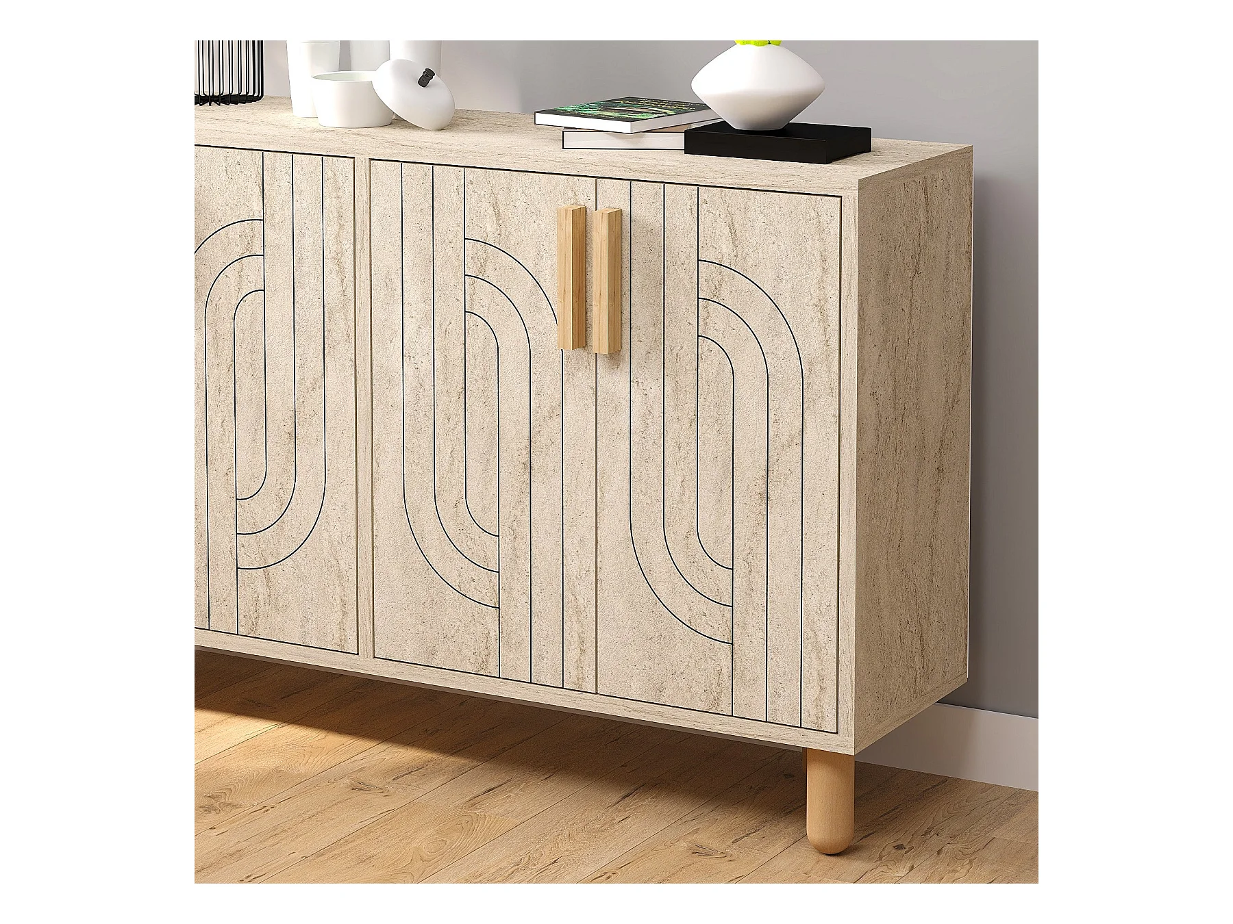Buffet design 4 portes battantes Cerka L120cm Effet travertin beige