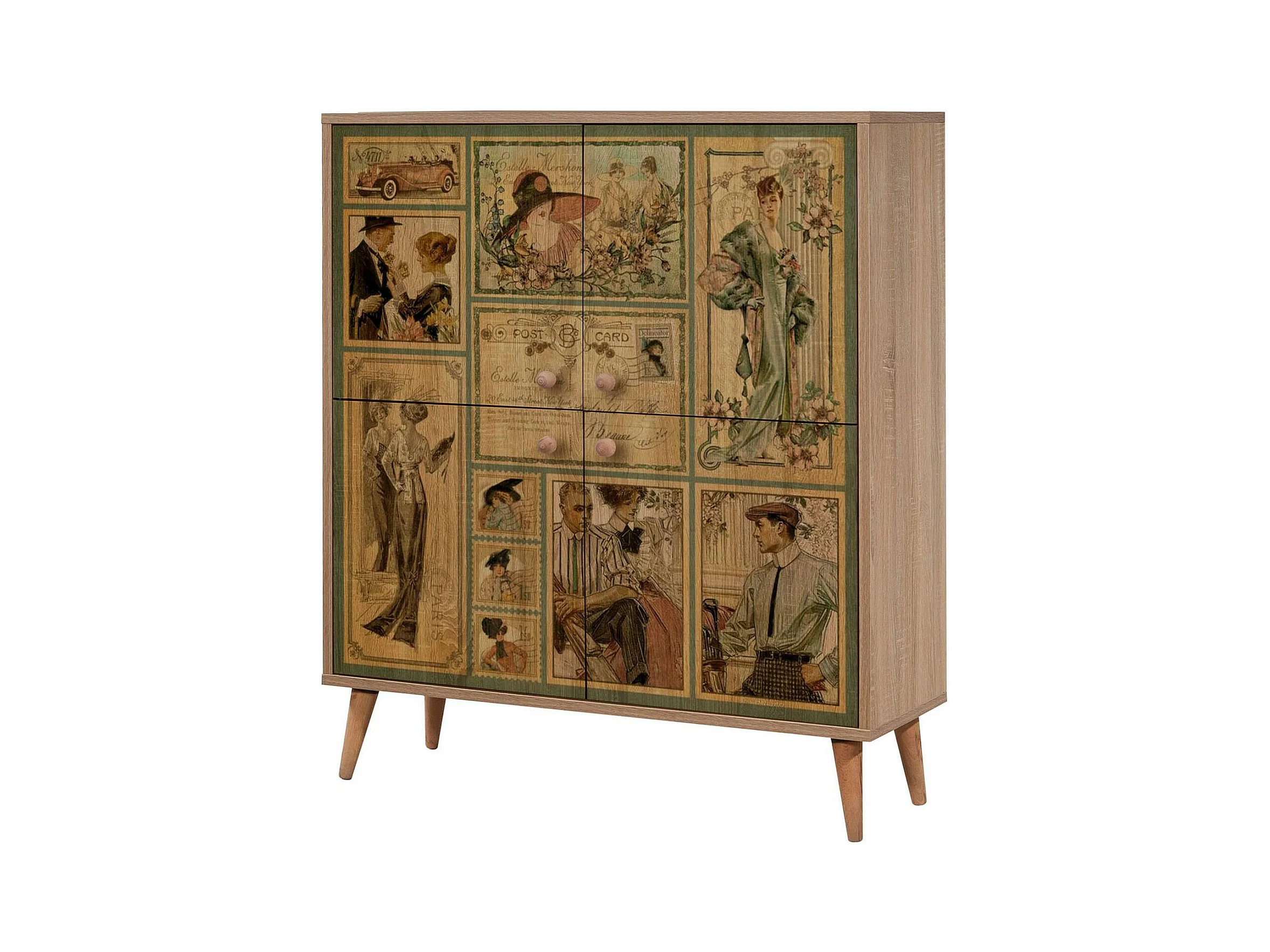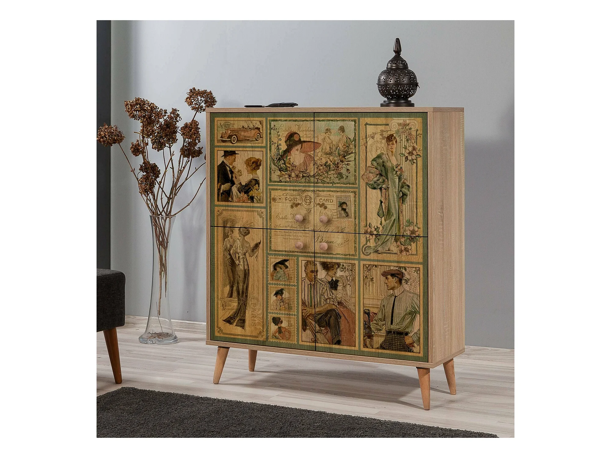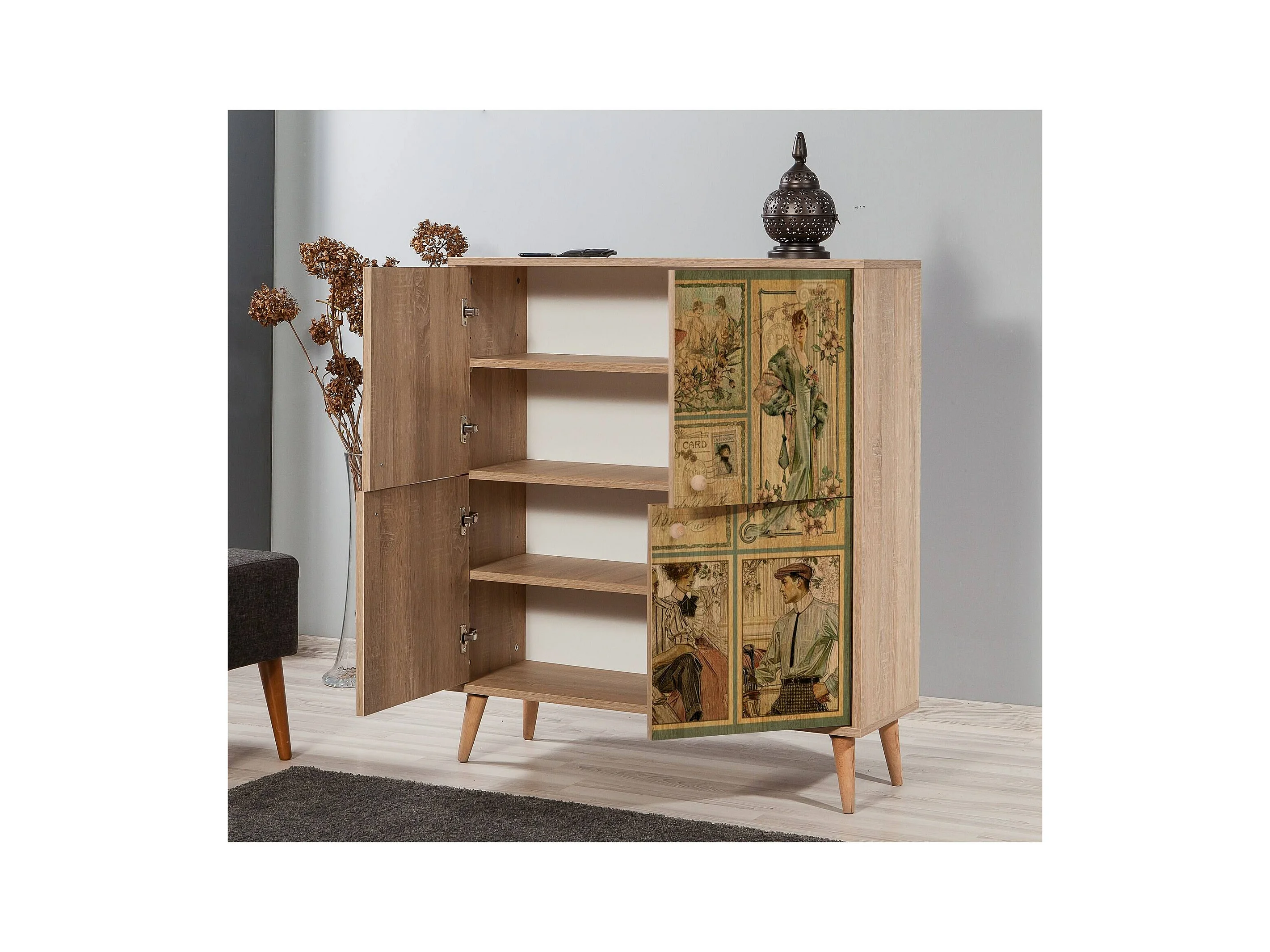 Buffet Dgiannin, Buffet du salon, Commode de salon, Garde-manger de cuisine, 95x36 h111 cm, Chêne et Multicolore