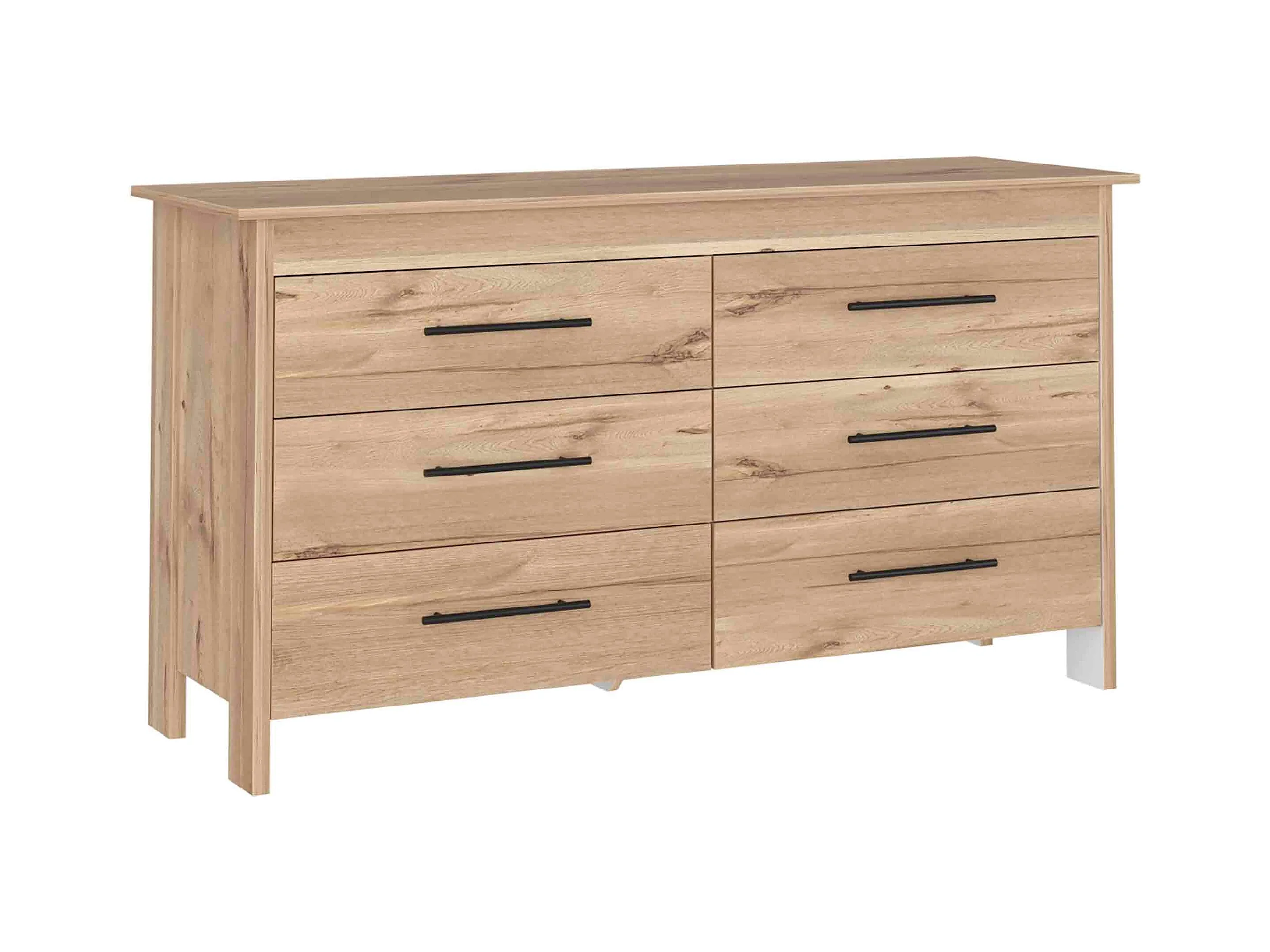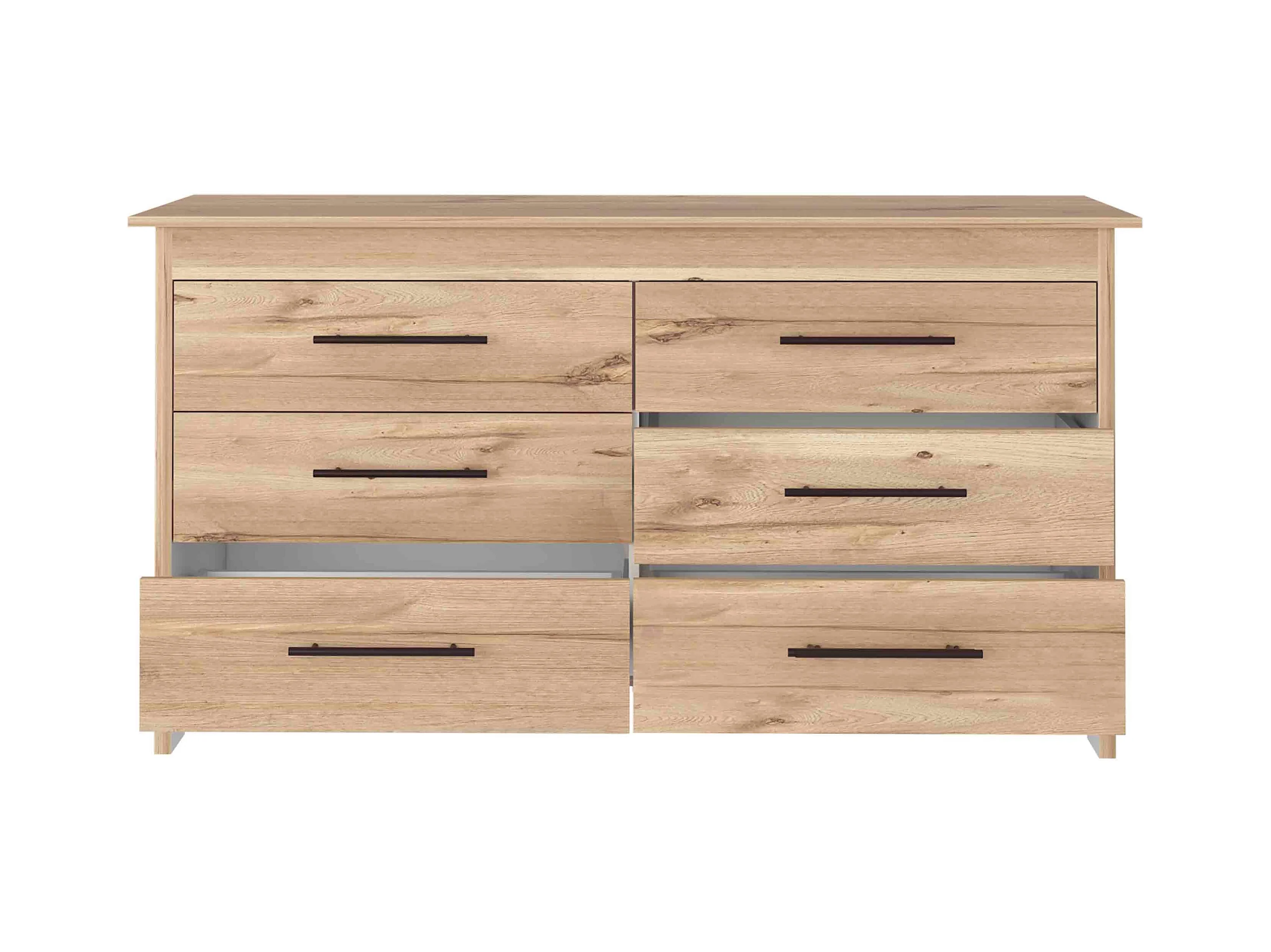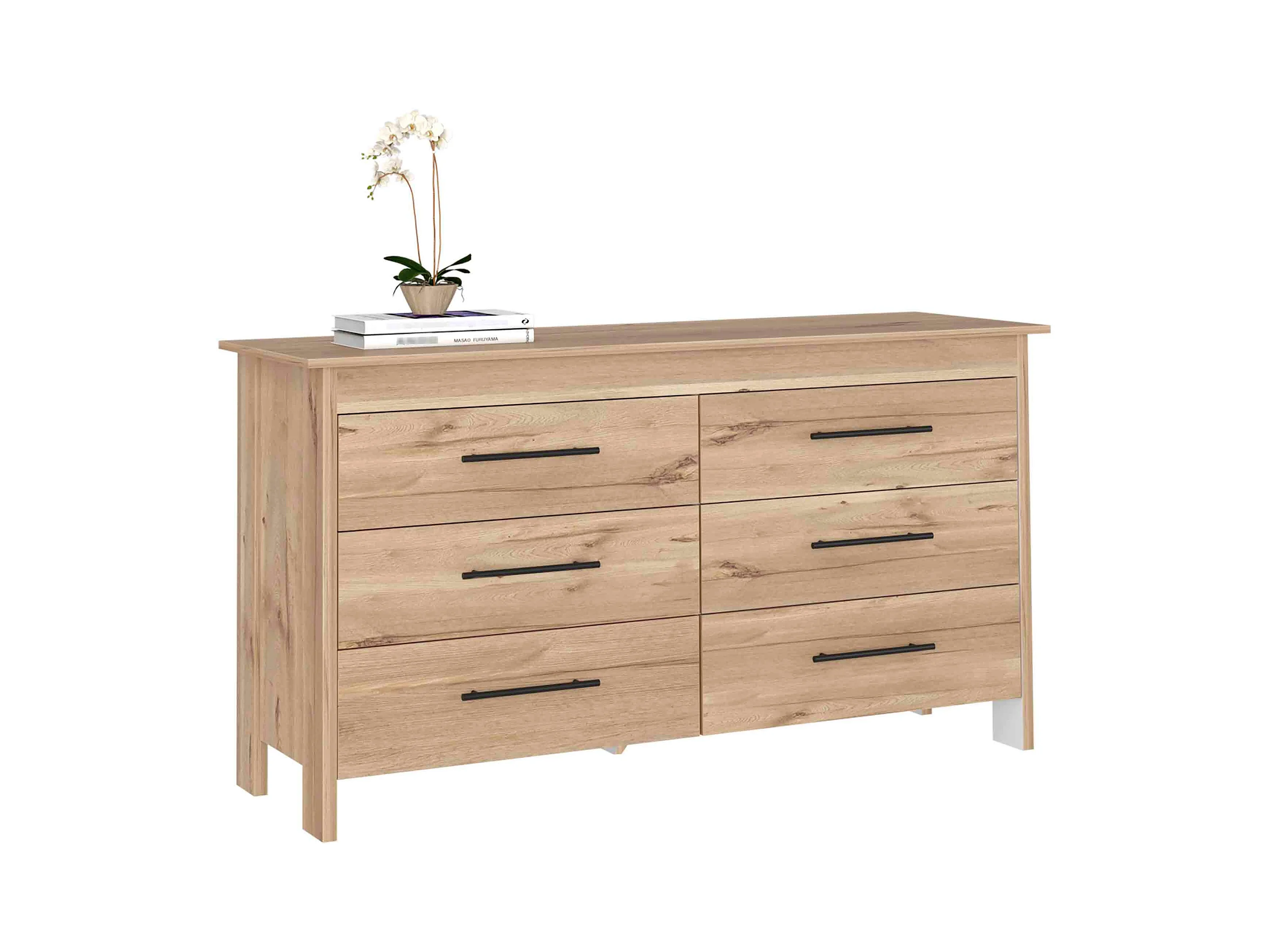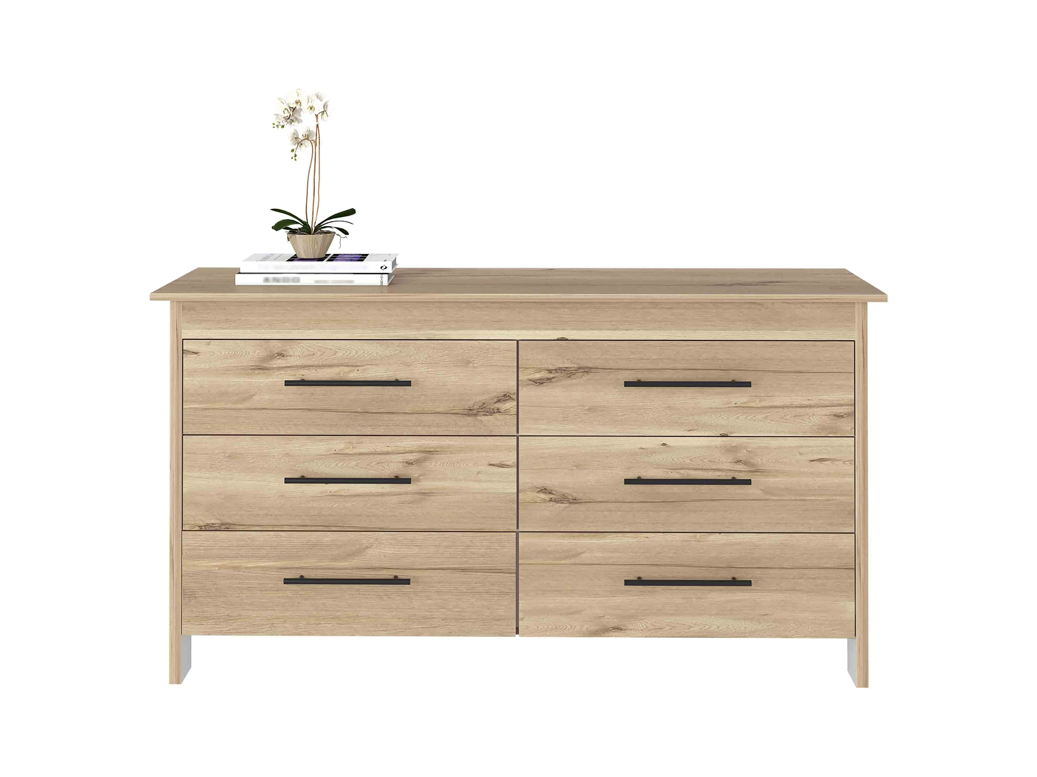 Buffet double Hms en mélamine avec 6 tiroirs avec rails métalliques, beige, 80.6 cm X 140.5 cm X 48.3 cm