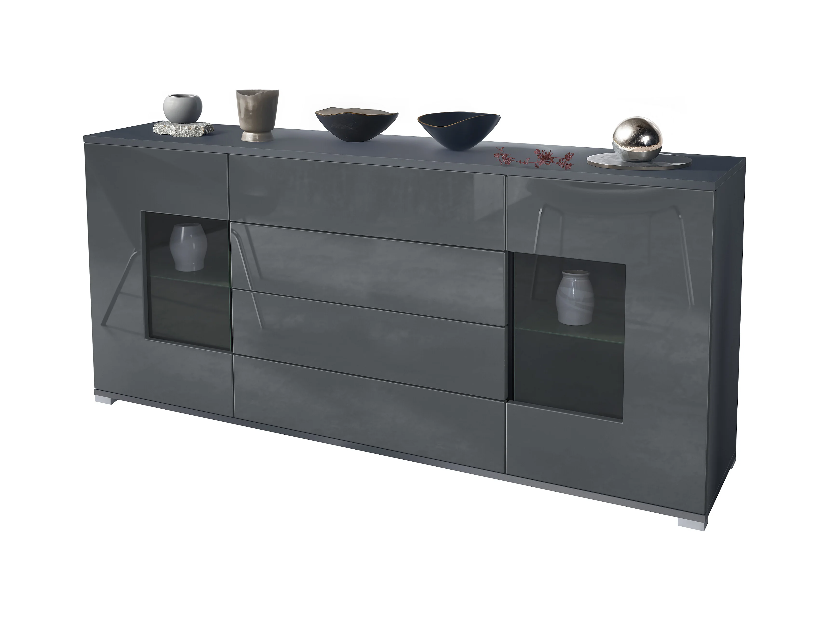 Buffet Grömitz V2 – Meuble avec 2 Grandes Portes et 4 Tiroirs, anthracite mat/gris haute brillance (166,5 x 75,5 x 35)