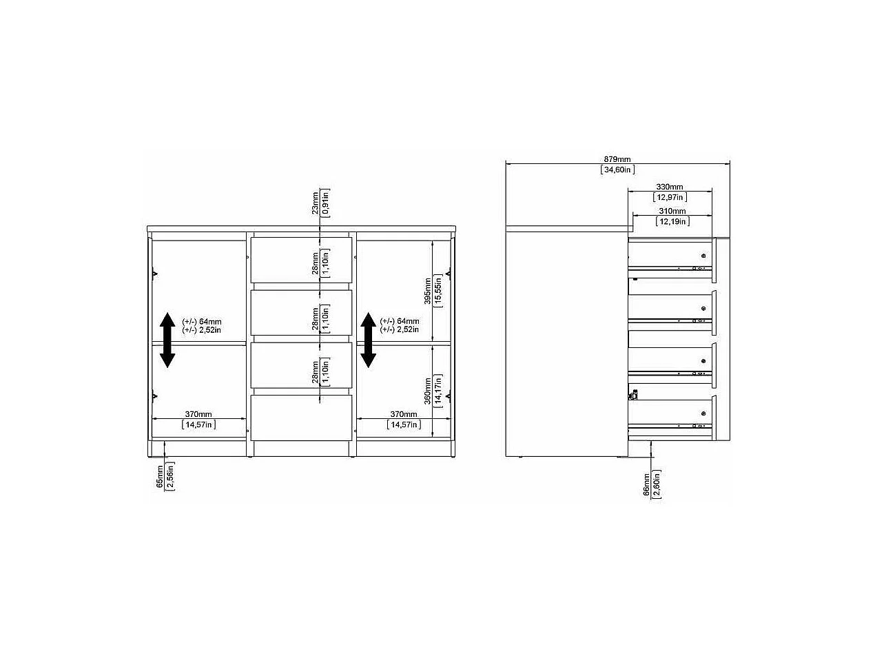 Buffet Dsalmas, Buffet du salon, Commode de salon, Garde-manger de cuisine, 121x50 h91 cm, Chêne clair