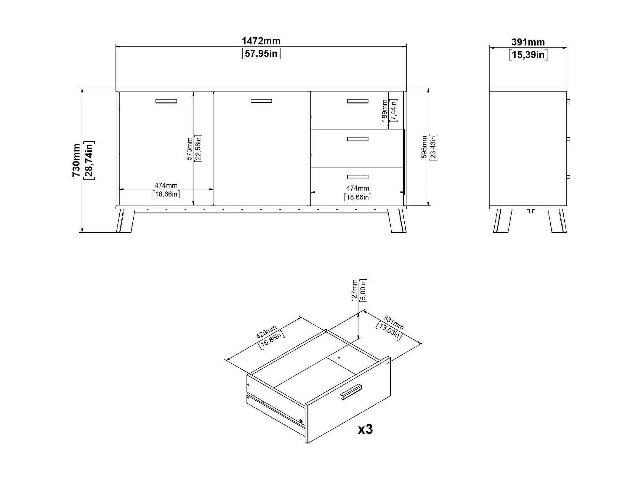 Buffet Dsanc, Buffet du salon, Commode de salon, Garde-manger de cuisine, 147x39 h73 cm, Chêne clair et Blanc