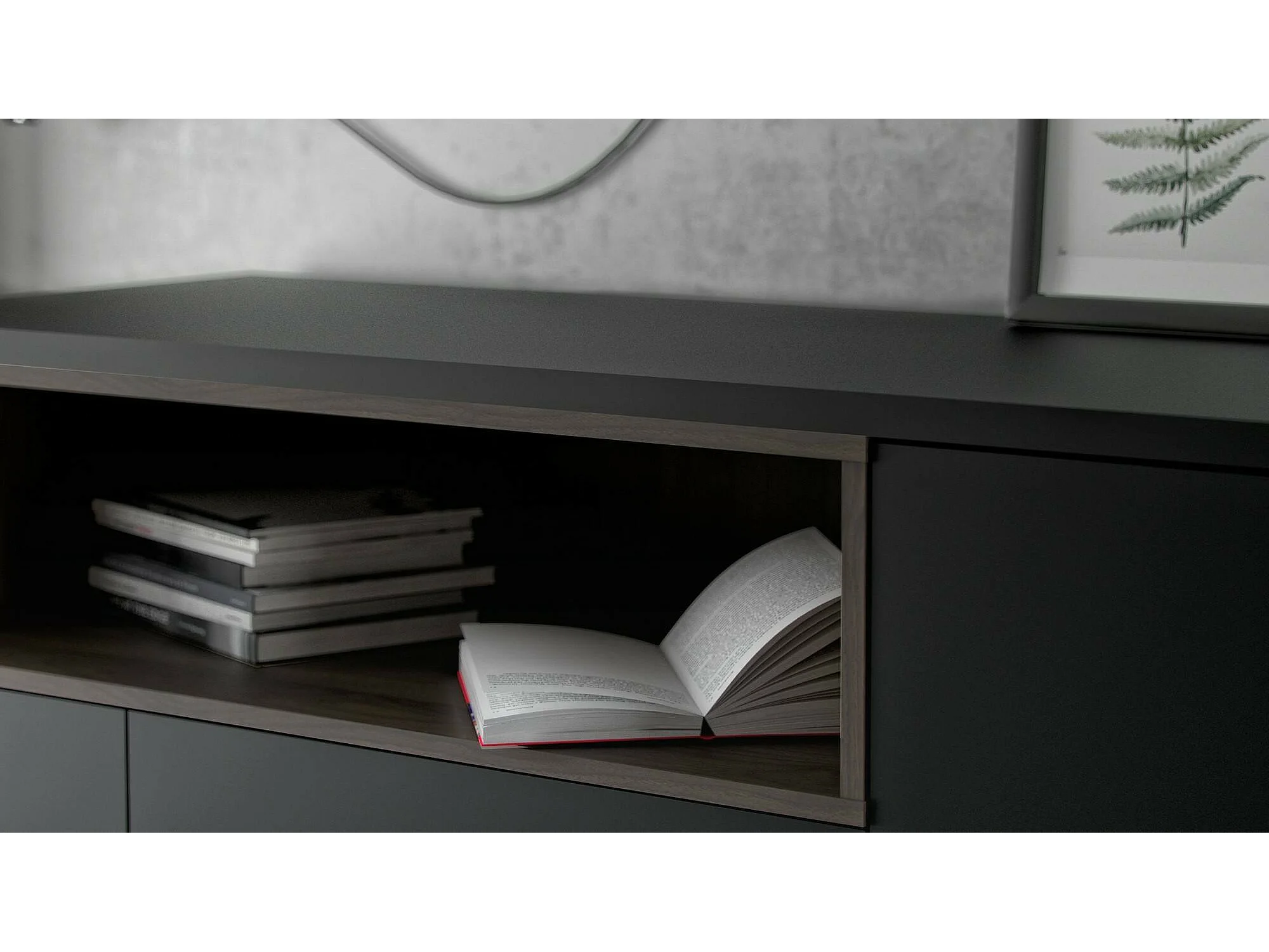 Buffet Dsardin, Buffet du salon, Commode de salon, Garde-manger de cuisine, 176x48 h90 cm, Noir et Noyer