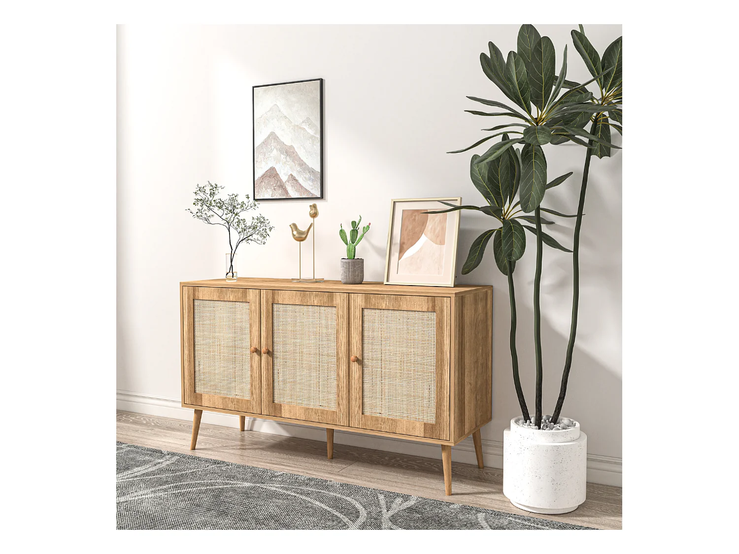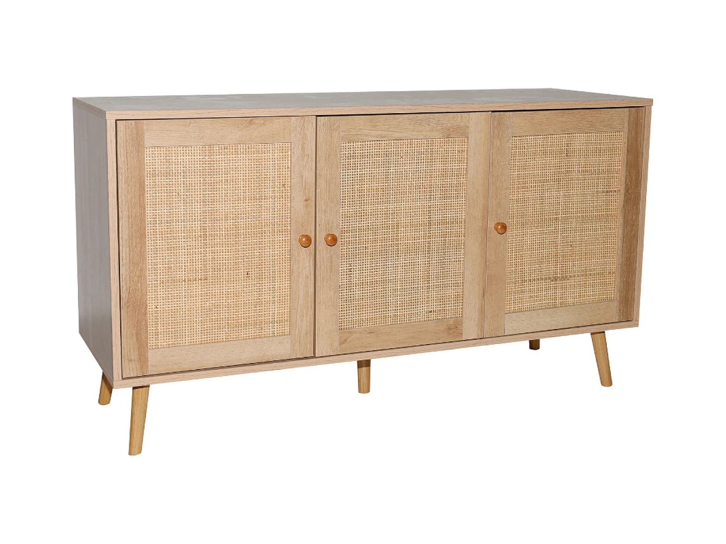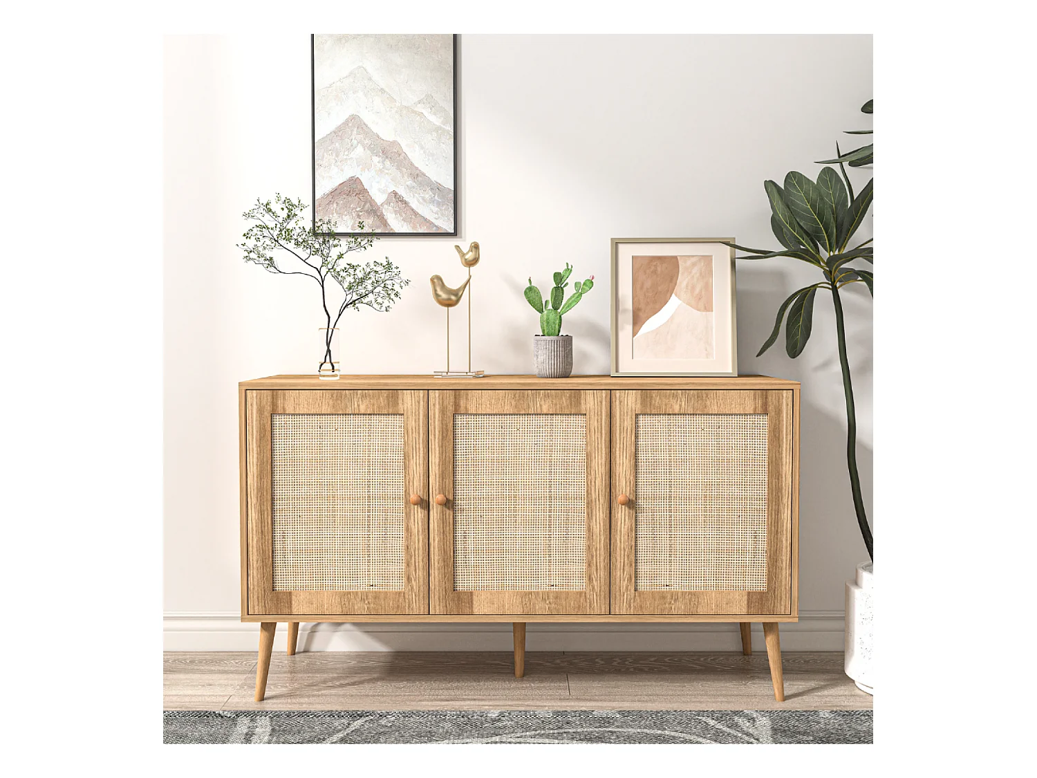 Buffet effet bois et cannage 3 portes 120 cm CANGE