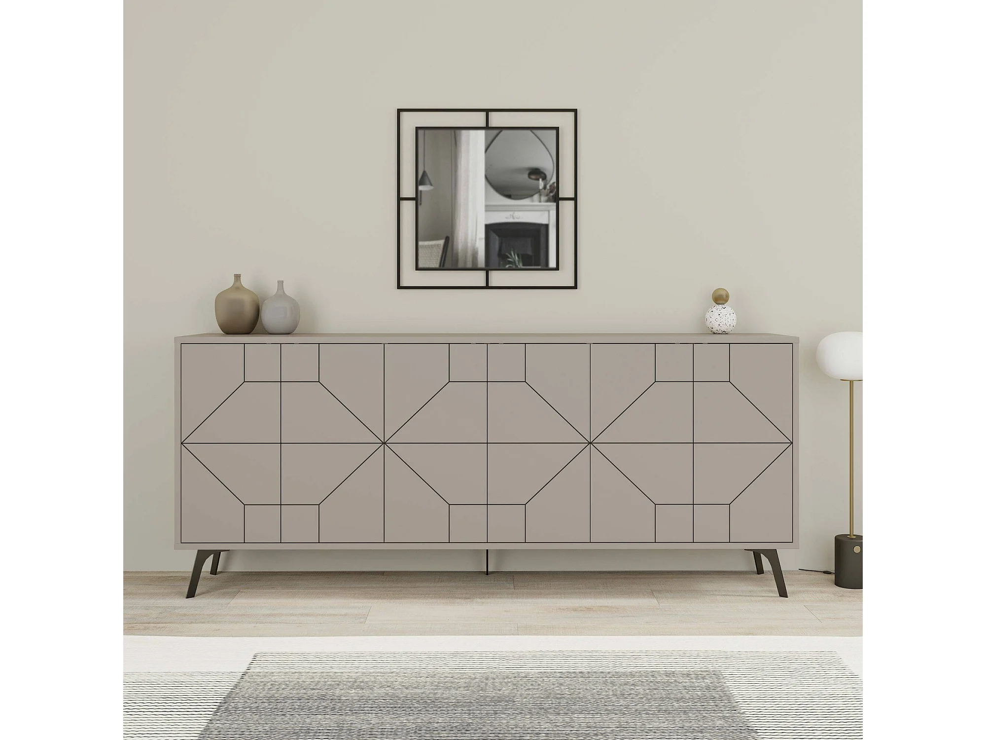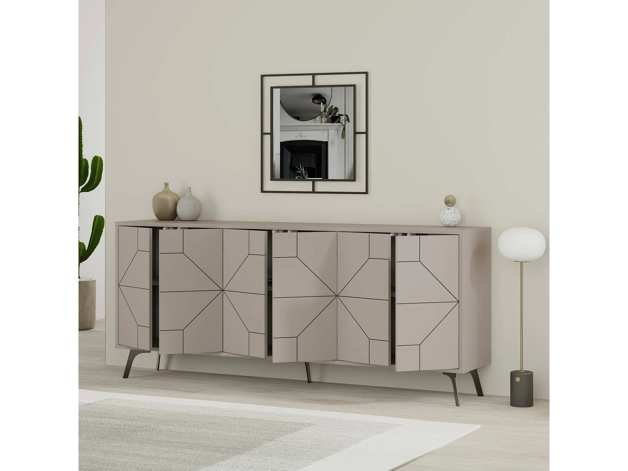 Buffet Elysium, Buffet du salon, Commode de salon, Garde-manger de cuisine, 184x35h77 cm, Ciment