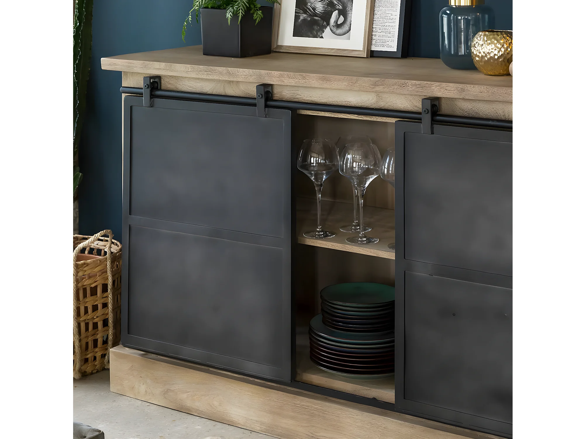 Buffet en bois de manguier brossé et métal gris foncé 4 tiroirs Helsinki