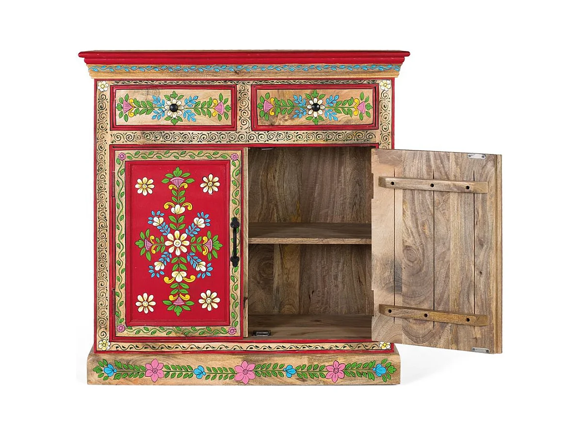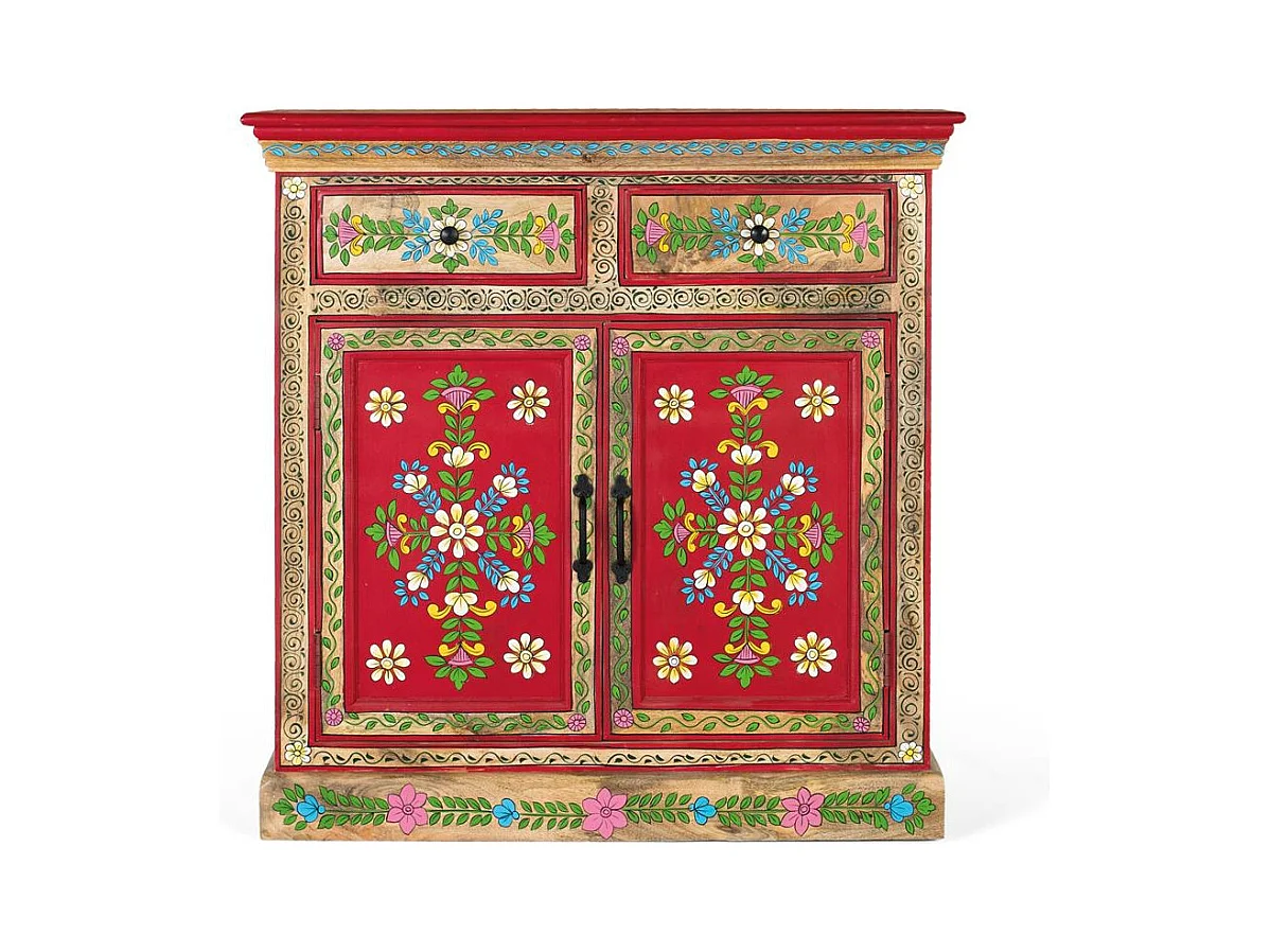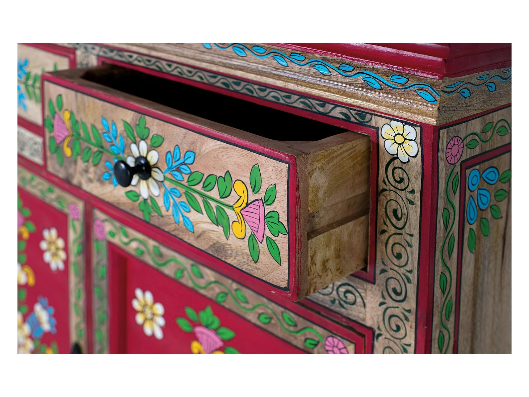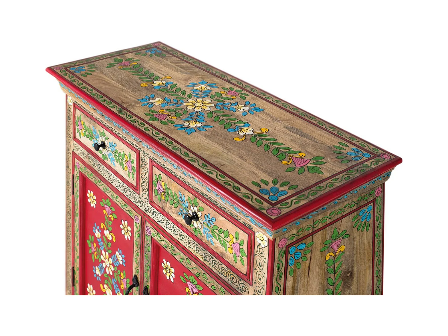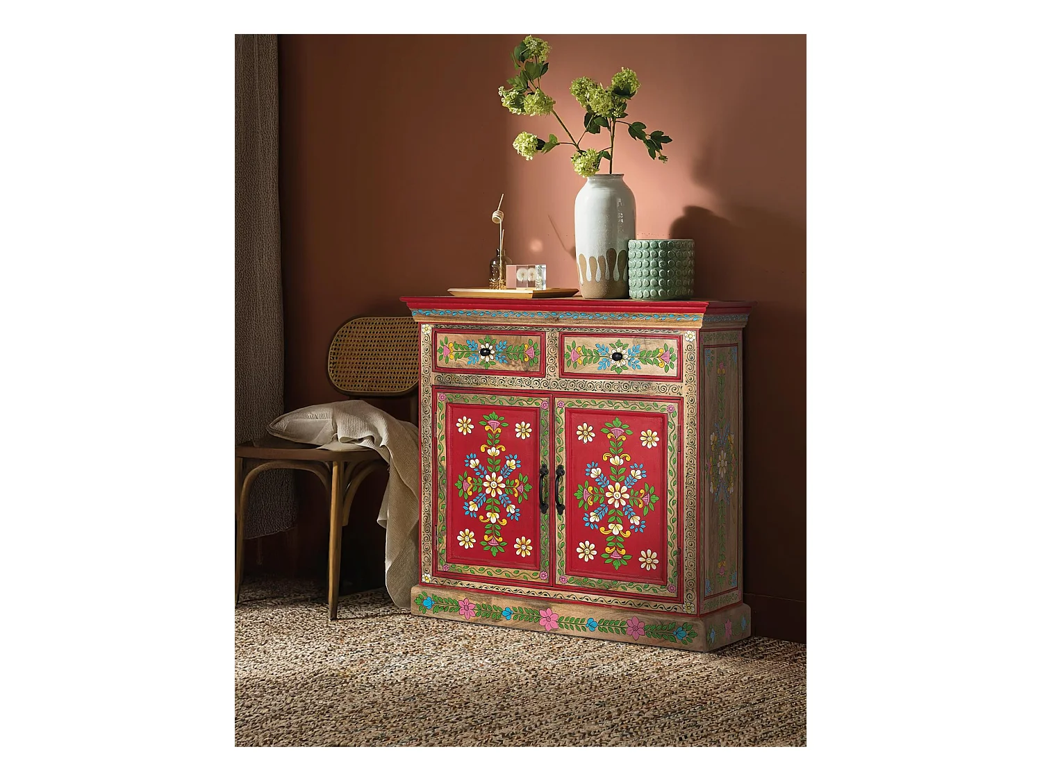 Buffet en bois de manguier peint à la main avec 2 tiroirs et portes